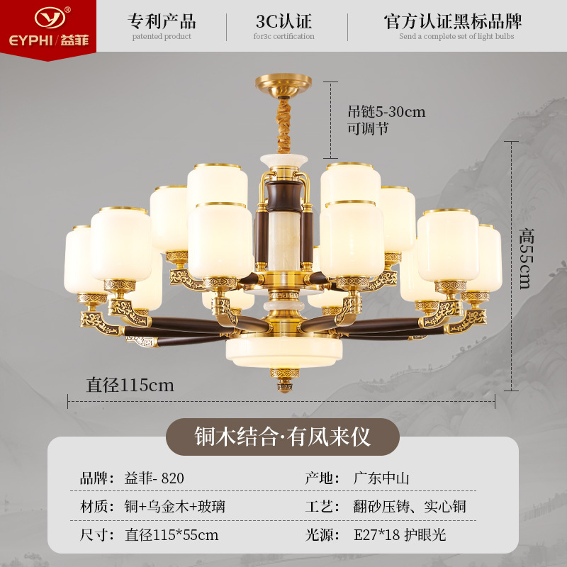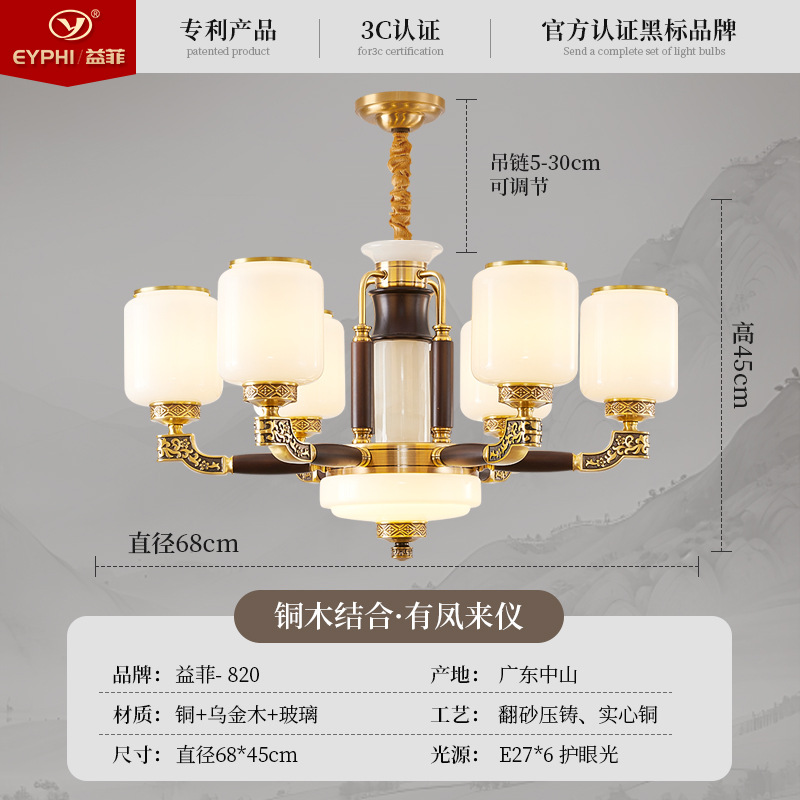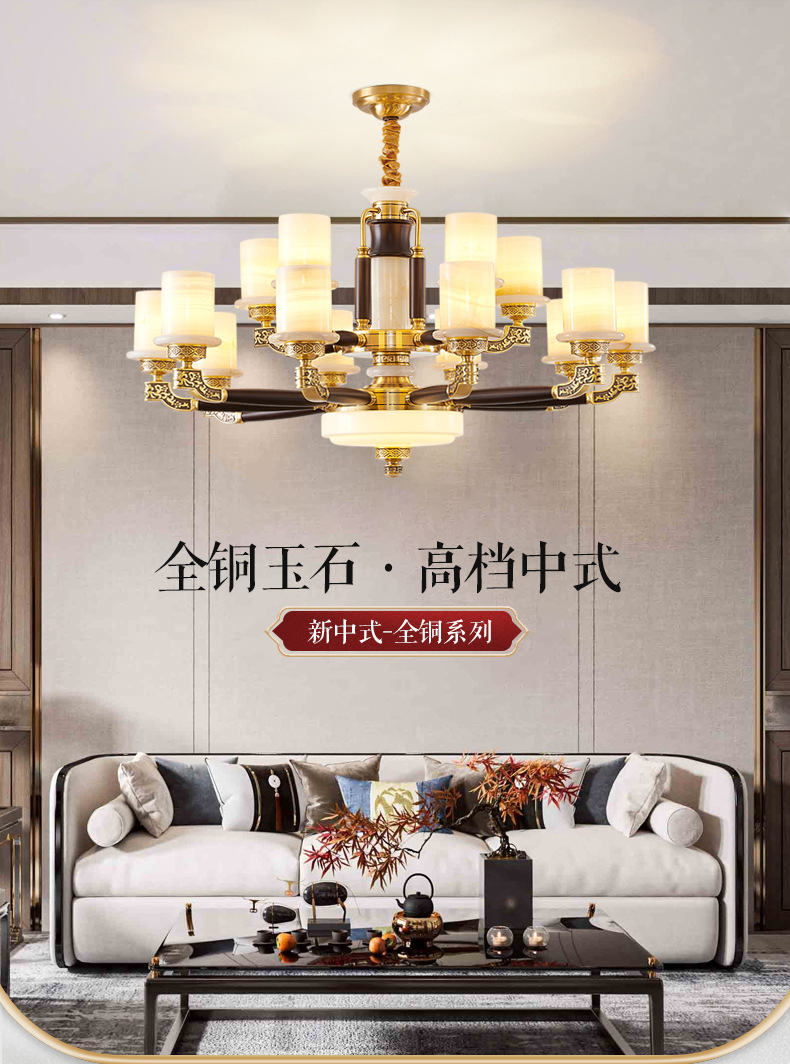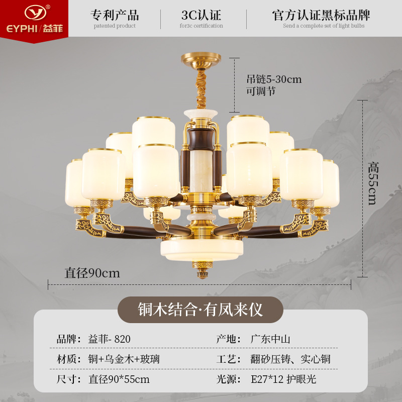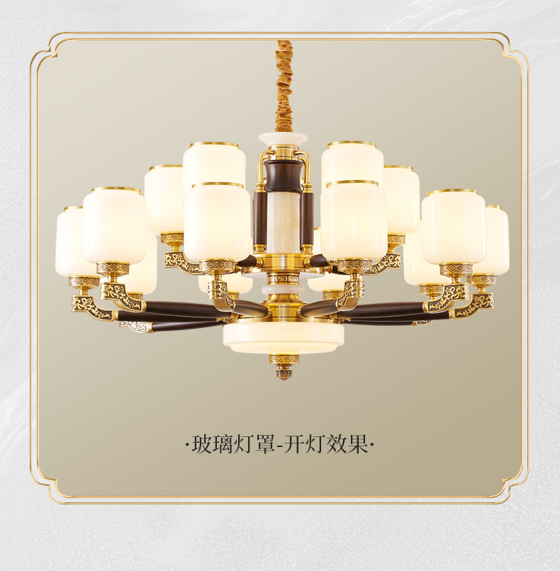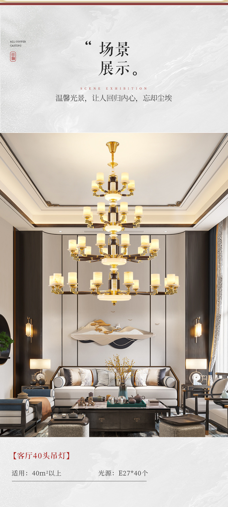 새로운 중국 스타일 구리 빌라 대형 샹들리에 이중 건물 자체 건축 집 빈 헤드 라이트 홈 농촌 중국 스타일 램프스토어 가기