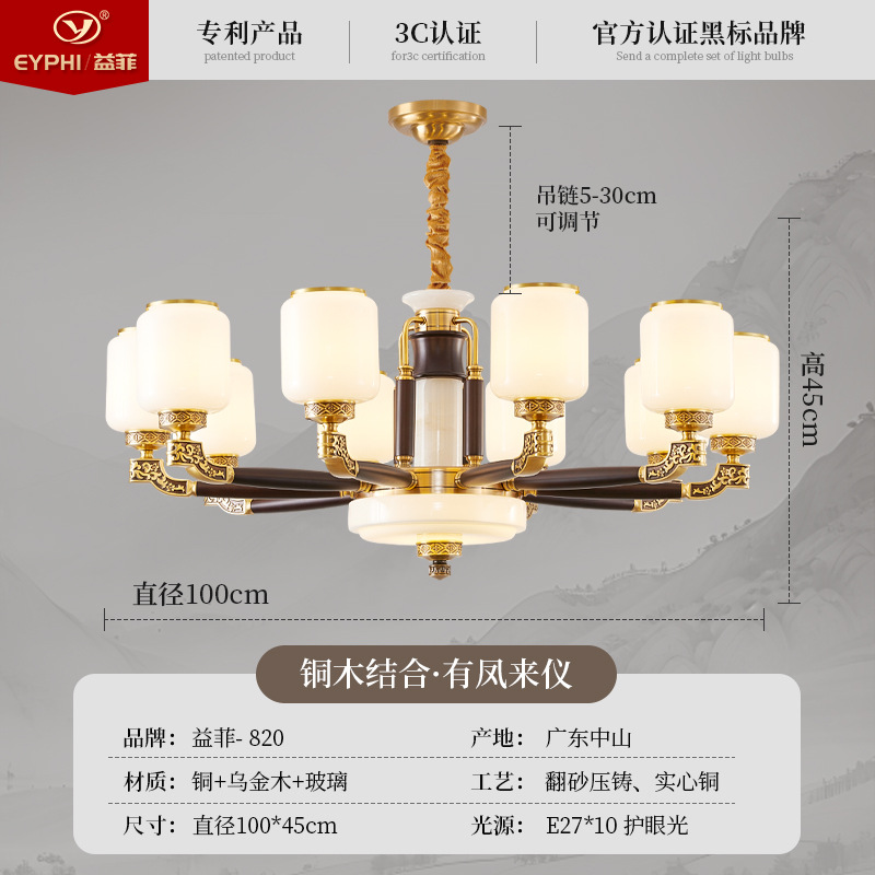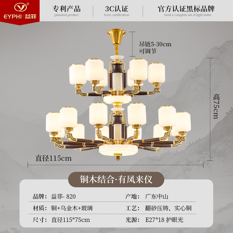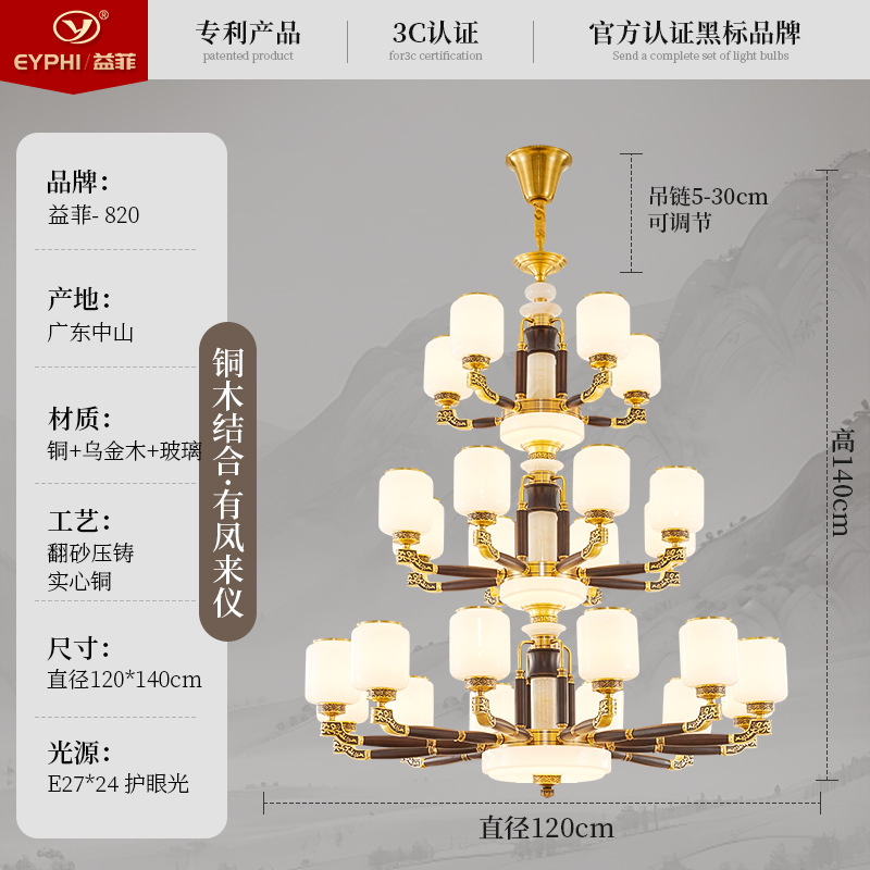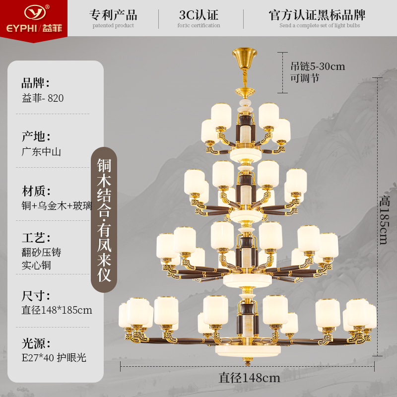 새로운 중국 스타일 구리 빌라 대형 샹들리에 이중 건물 자체 건축 집 빈 헤드 라이트 홈 농촌 중국 스타일 램프
