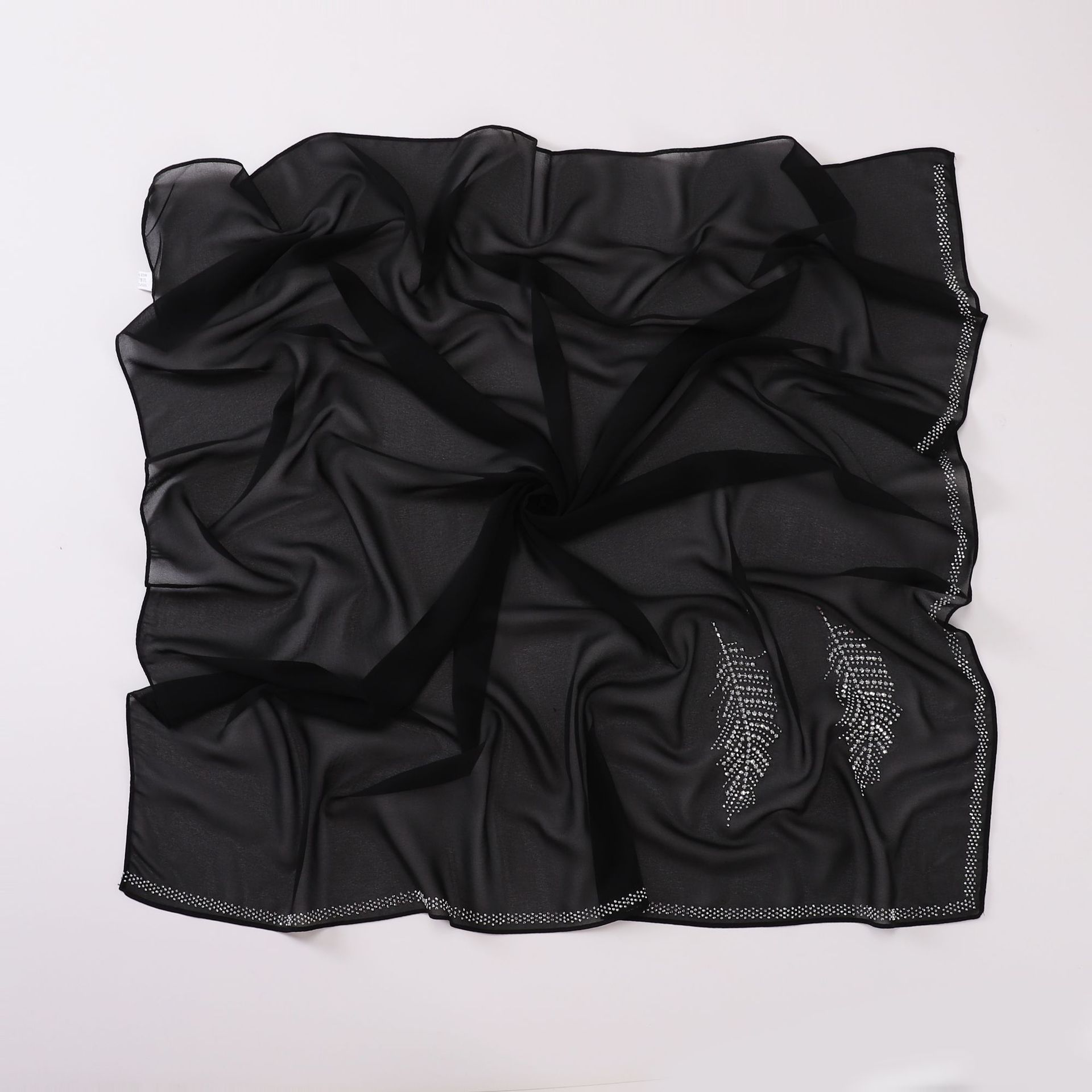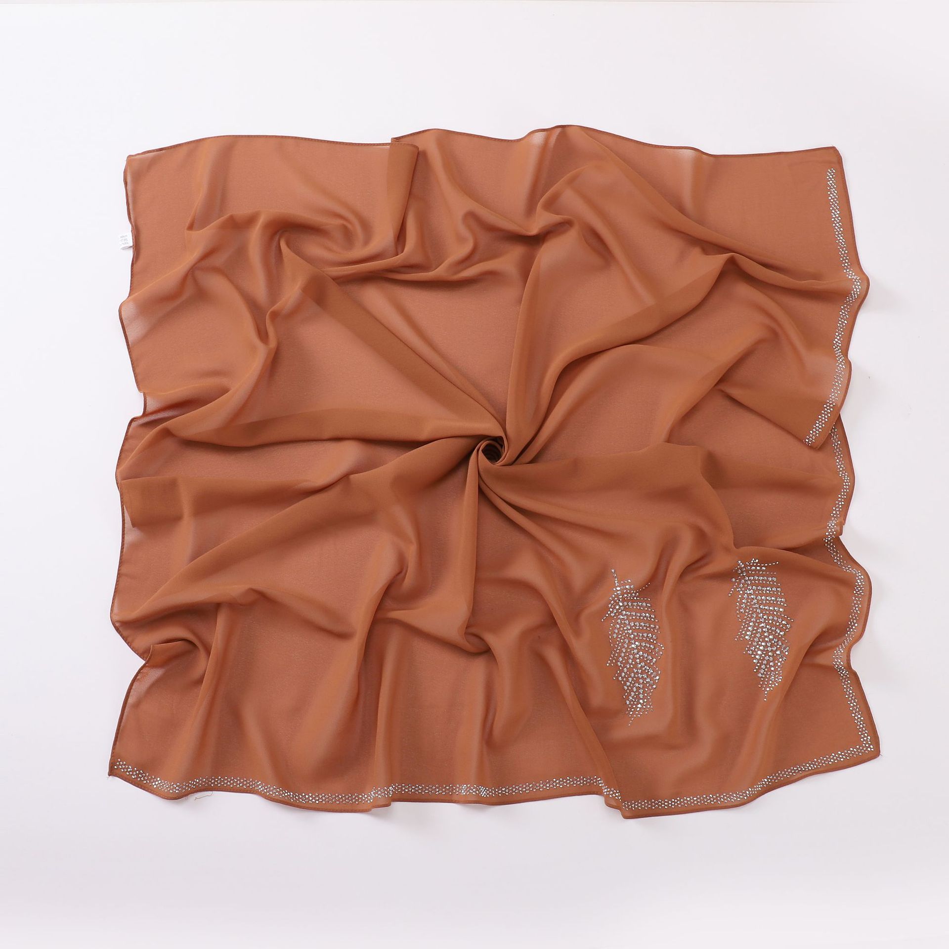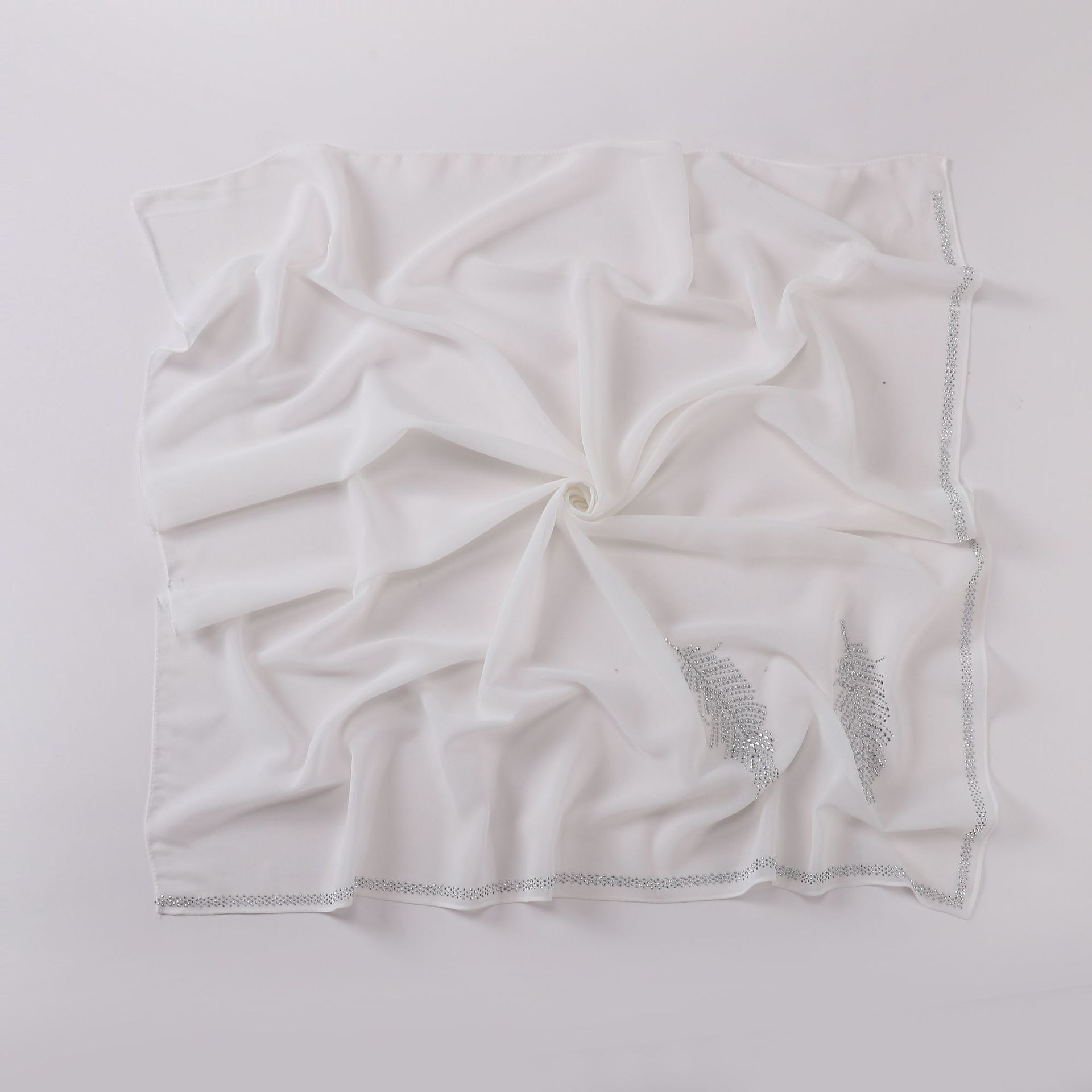 라이브 스트리밍 새로운 진주 쉬폰 깃털 모조 다이아몬드 스퀘어 스카프 후이 거즈 90 × 90cm 무슬림 스카프