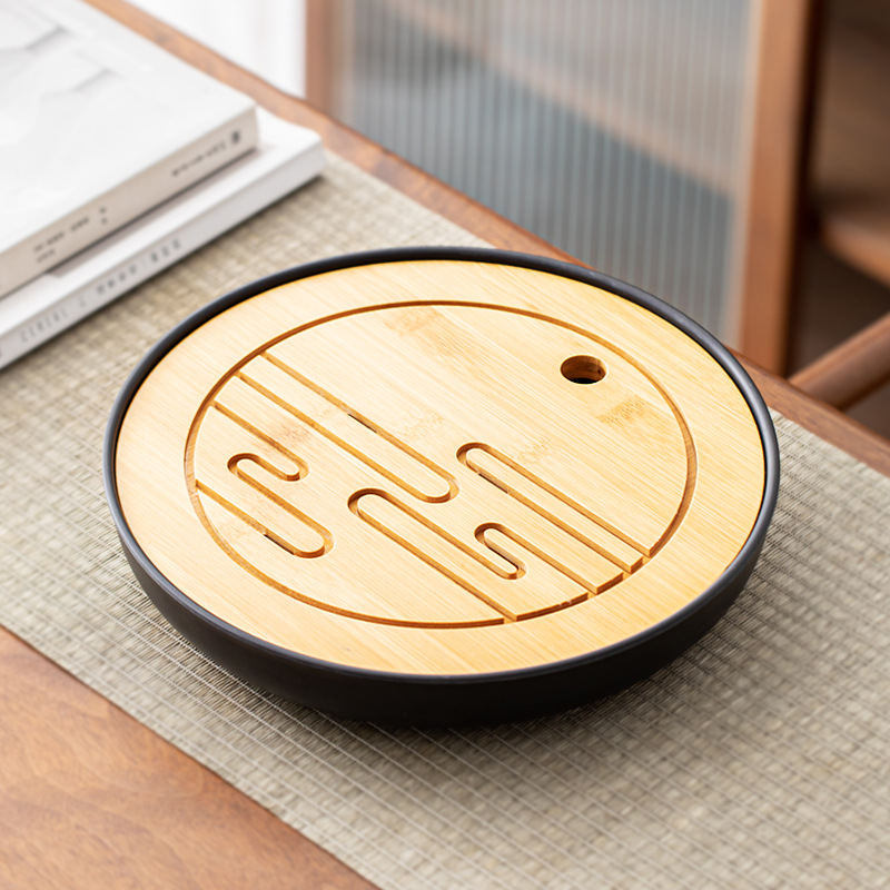 • 라운드 산 차 트레이 블랙 25*25 [물 저장 차 트레이]]