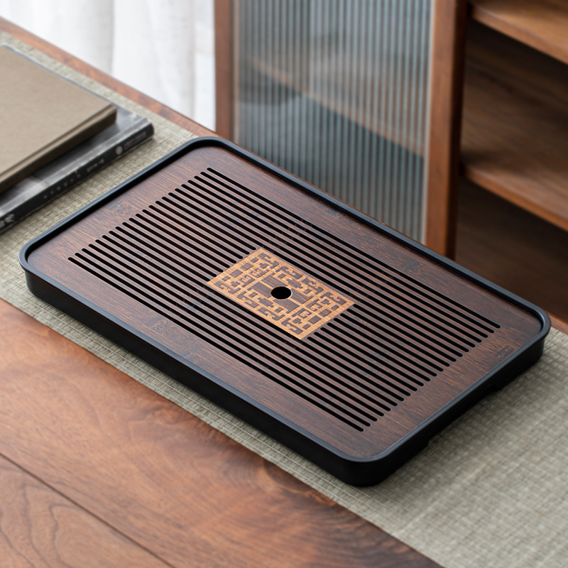 • 작은 직사각형 차 트레이 블랙 28*12 [물 저장 차 트레이]]