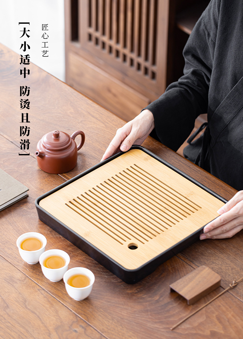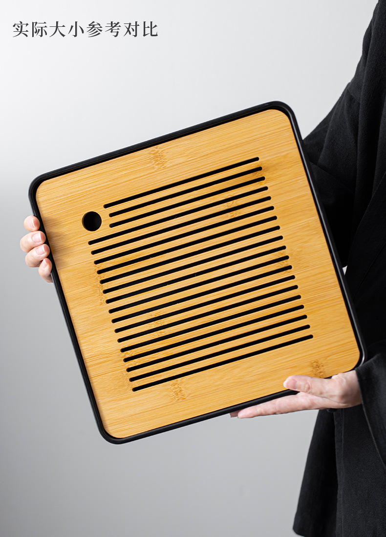 • 작은 사각형 차 트레이 블랙 20*20 [물 저장 차 트레이]]