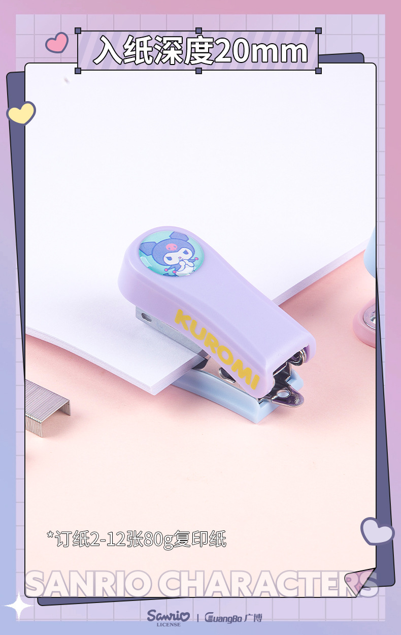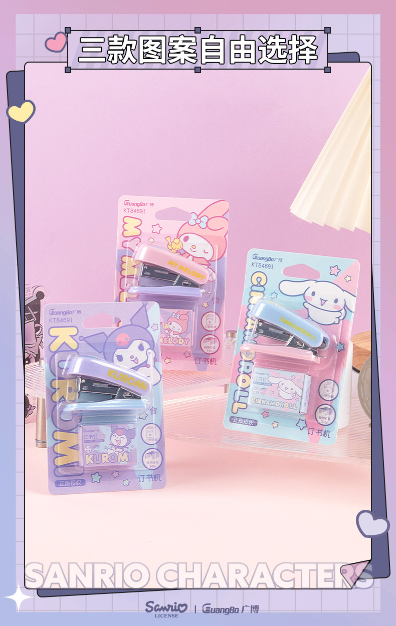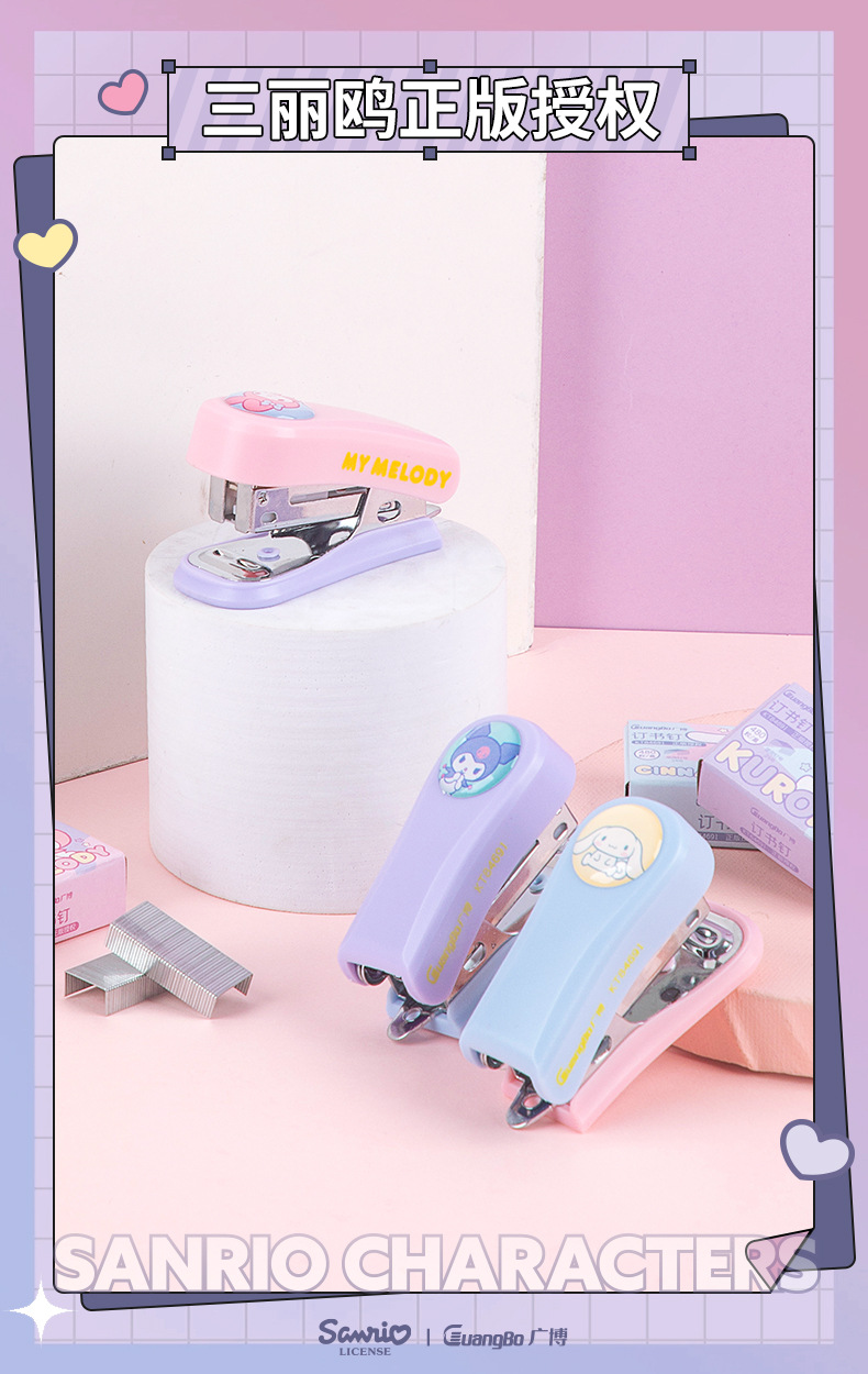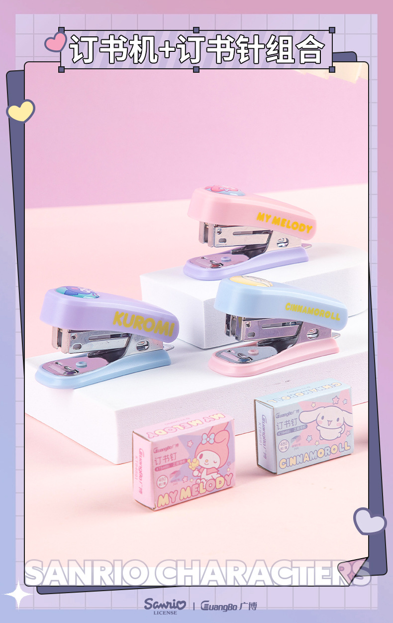 Guangbo 진정한 새로운 Sanrio 스테이플러 세트 학생 재료 테스트 종이 미니 오피스 스테이플러 도매
