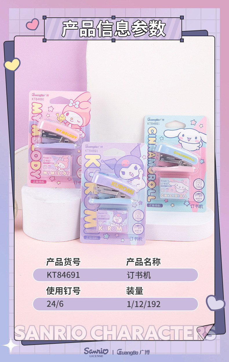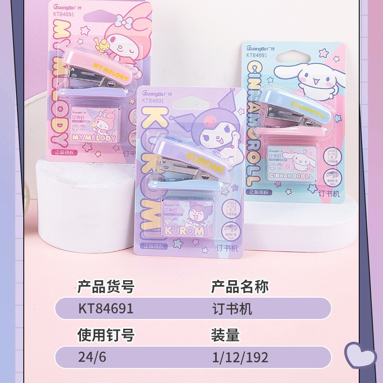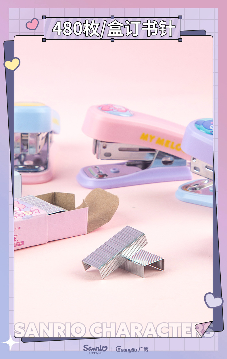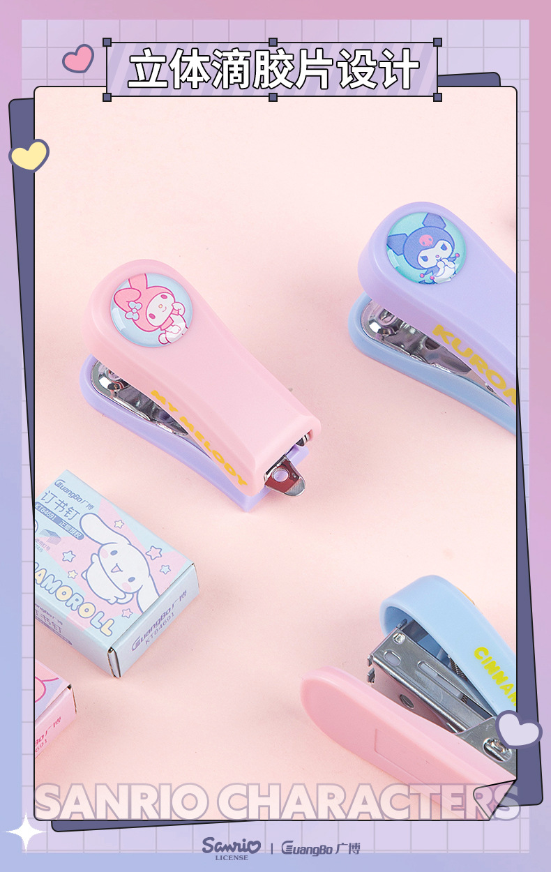 Guangbo 진정한 새로운 Sanrio 스테이플러 세트 학생 재료 테스트 종이 미니 오피스 스테이플러 도매