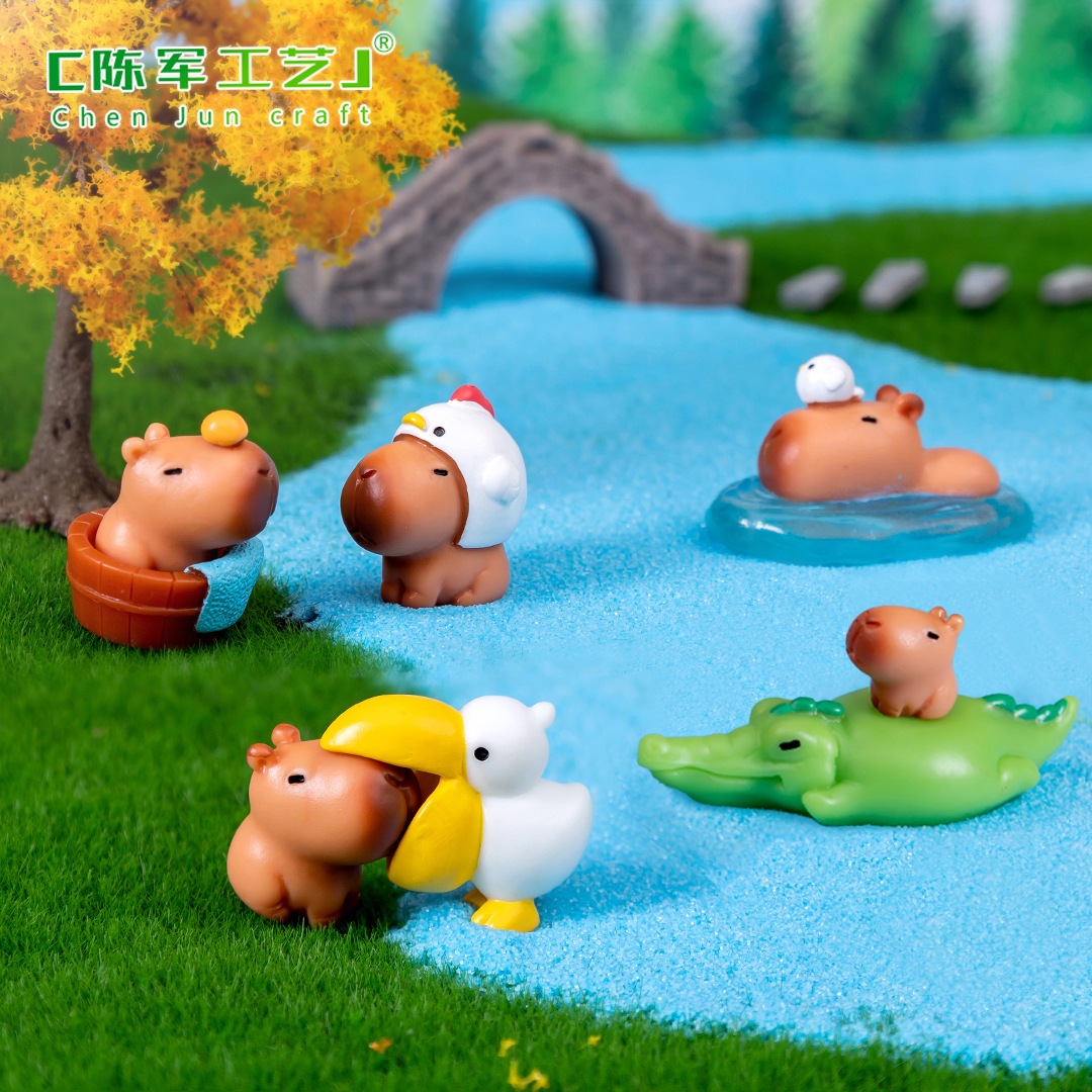 마이크로 풍경 창조적 인 귀여운 카피 바라 작은 인형 블라인드 박스 액세서리 자동차 데스크탑 작은 장식품