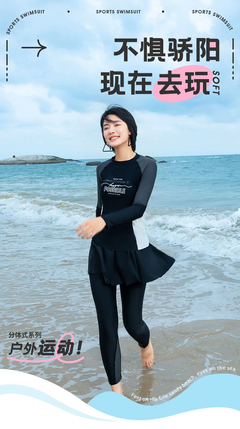 다이빙 세트 여성 수영복 긴팔 바지 해파리 태양 보호 스플릿 스커트 플러스 사이즈 보수적 인 수영 스노클링 서핑 세트스토어 가기