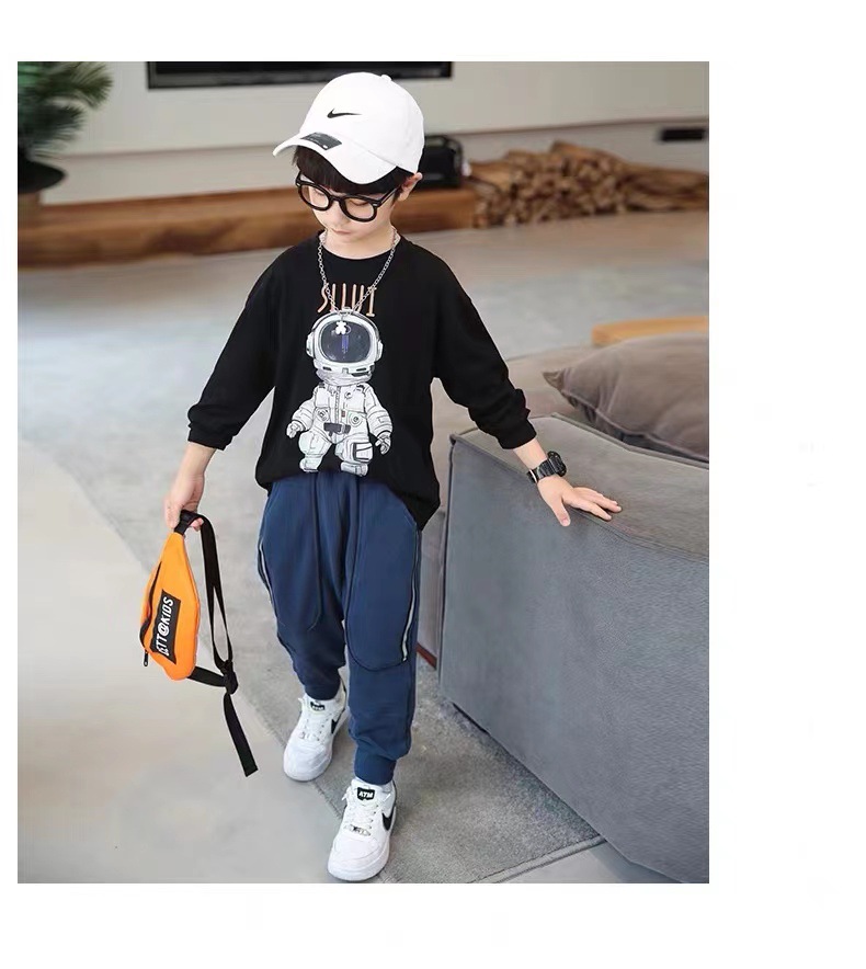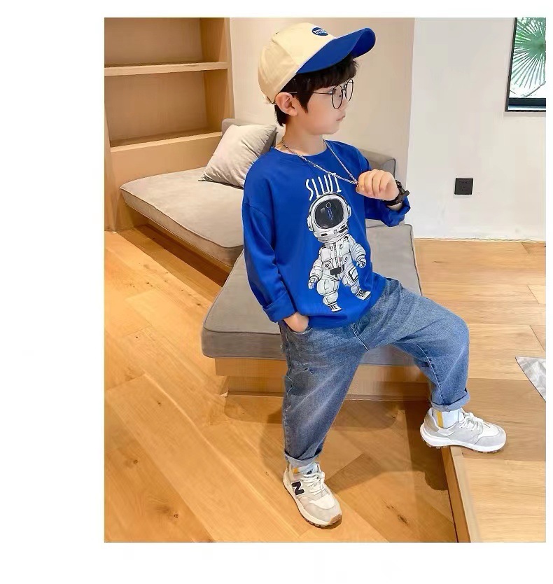 어린이 100% 면화 긴팔 티셔츠 우주 비행사를위한 소년 겉옷 셔츠 봄과 가을 아이들의 부드러운면 바닥 셔츠스토어 가기