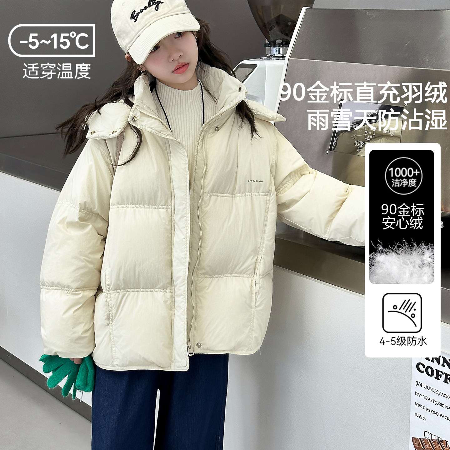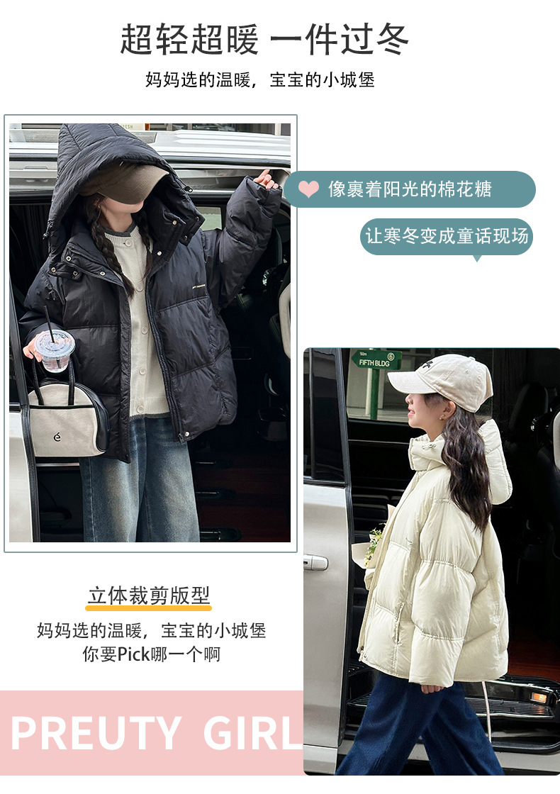여아용 다운 재킷 겨울옷 따뜻한 2025년 신상 여아용 매우 예쁜 한국 스타일 겨울 흰색 오리털 재킷 짧은 스타일스토어 가기