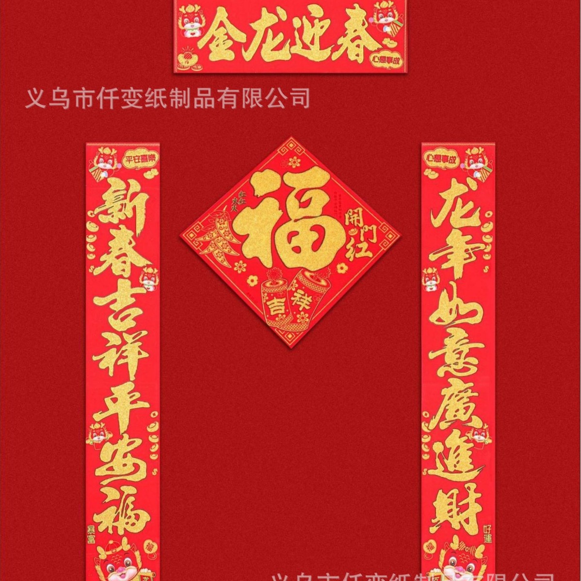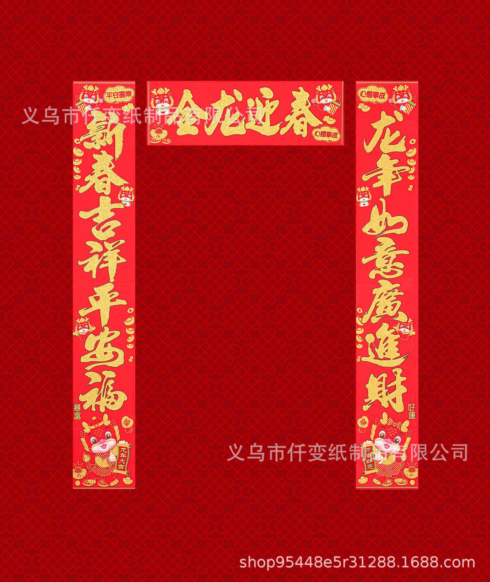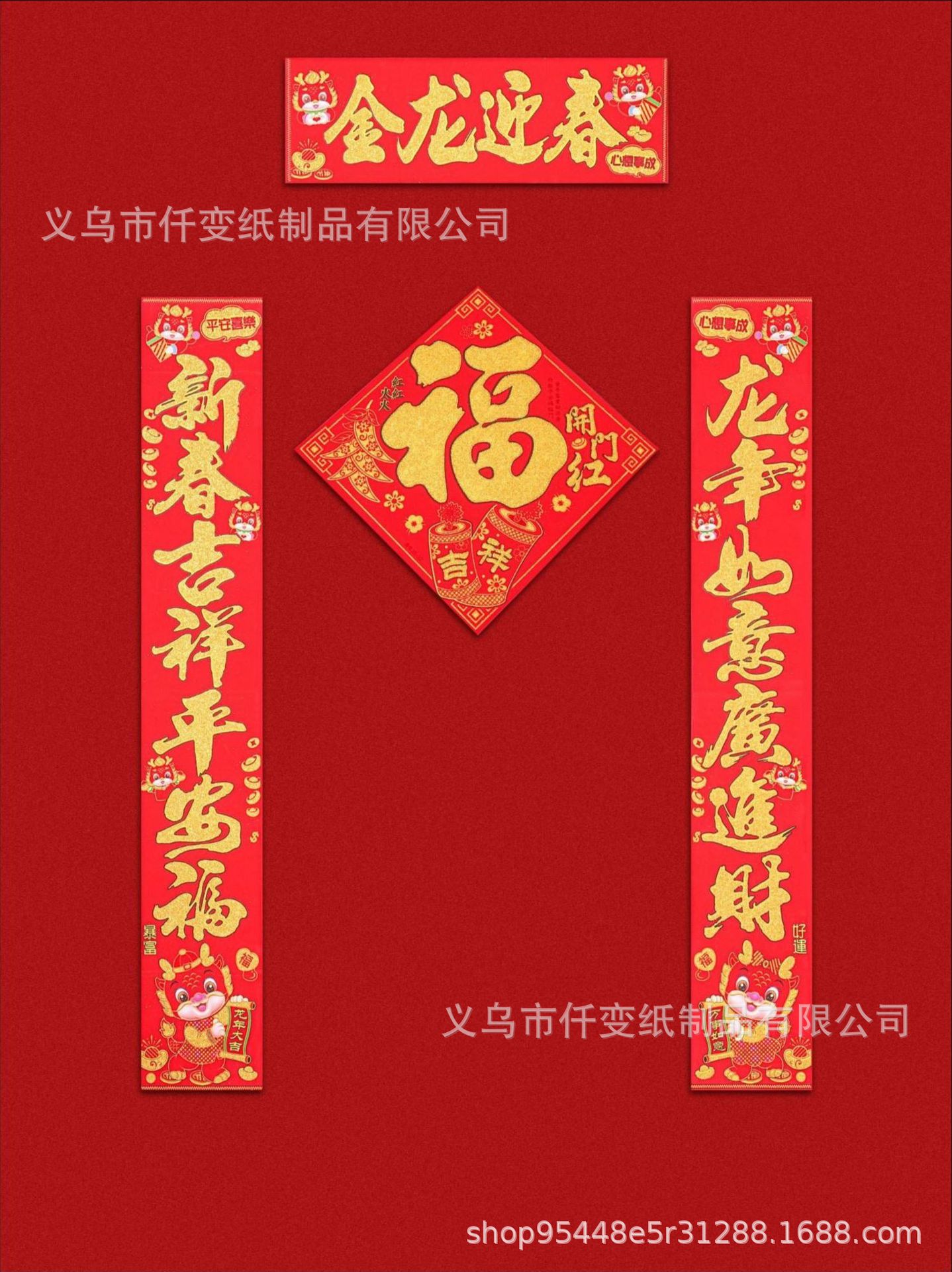 2023 년 드래곤 봄 축제 새로운 푸 캐릭터 봄 커플 플렛 몰락 골드 핑크 푸 캐릭터 도어 스티커 조디악 3 차원 푸 커플 도매