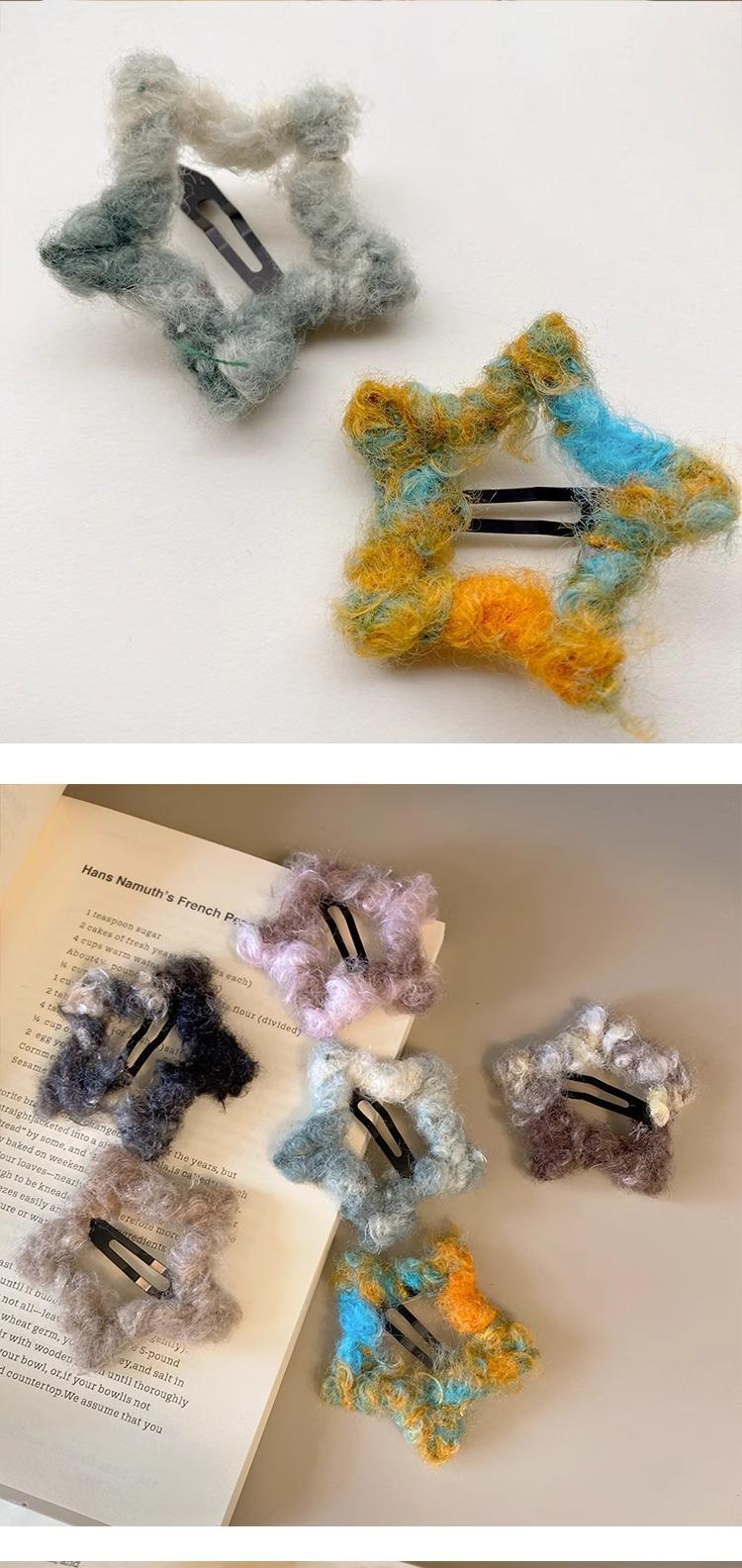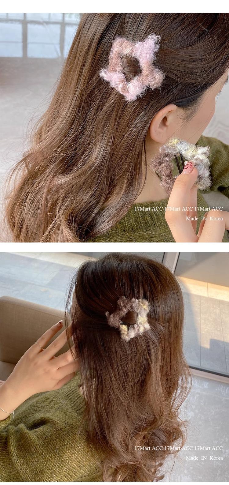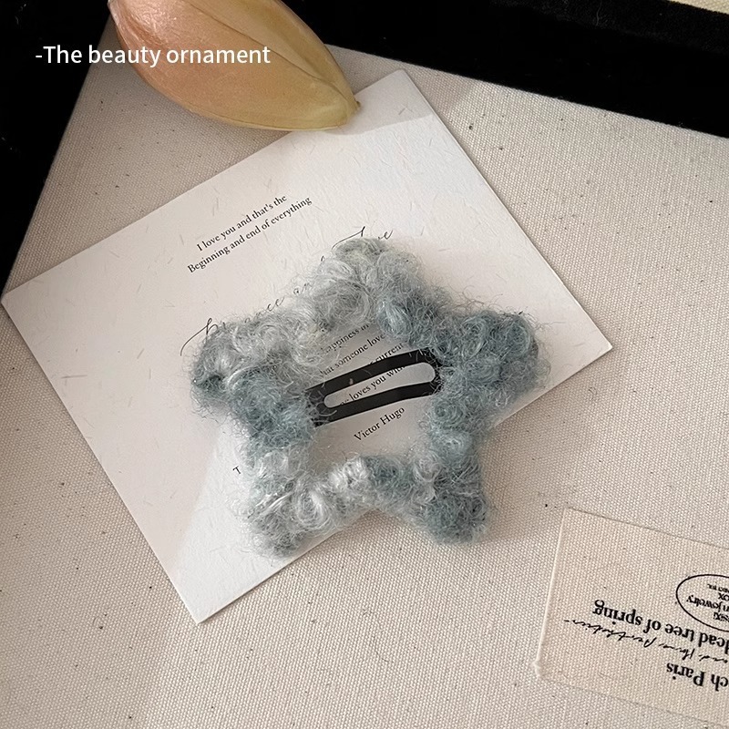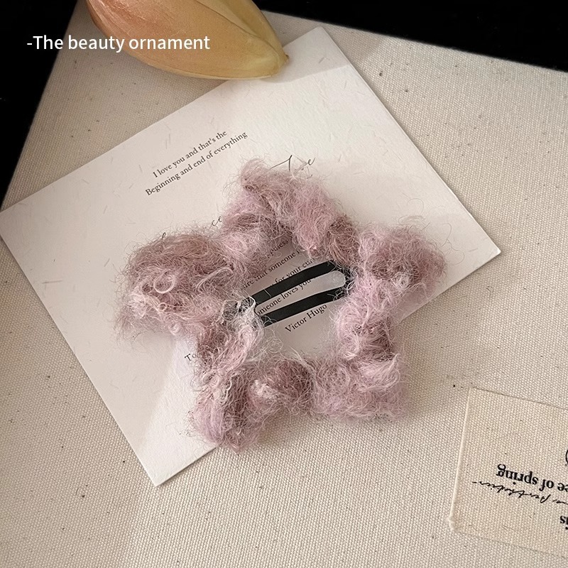 헤어핀 한국식 잉크 그림 피는 머리 장식 모피 사이드 새로운 귀여운 봉제 앞머리 다섯개 별 소녀 가을과 겨울스토어 가기