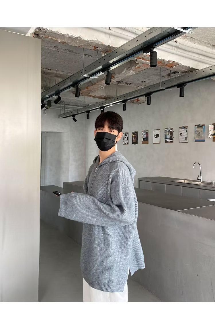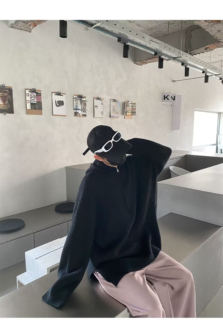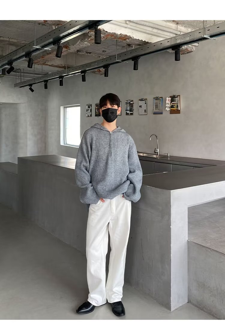 2023 가을과 겨울 반 지퍼 후드 스웨터 남성 겨울 한국 스타일 게으른 스타일 스웨터 오버 사이즈 코트 패션스토어 가기