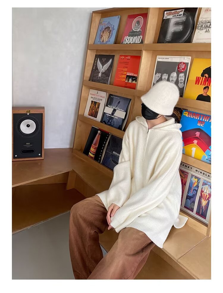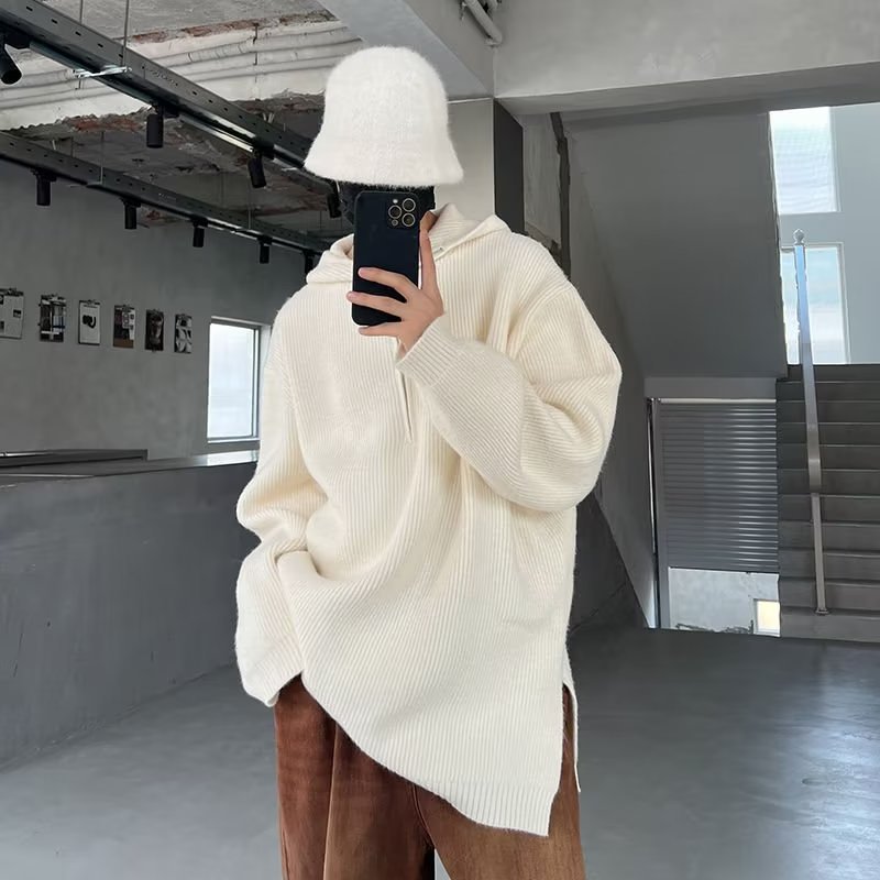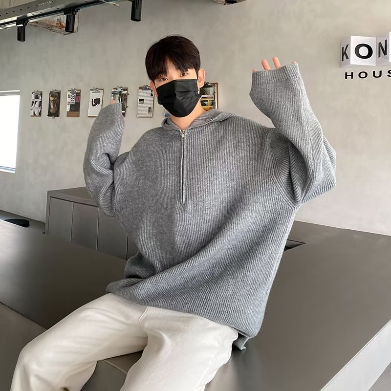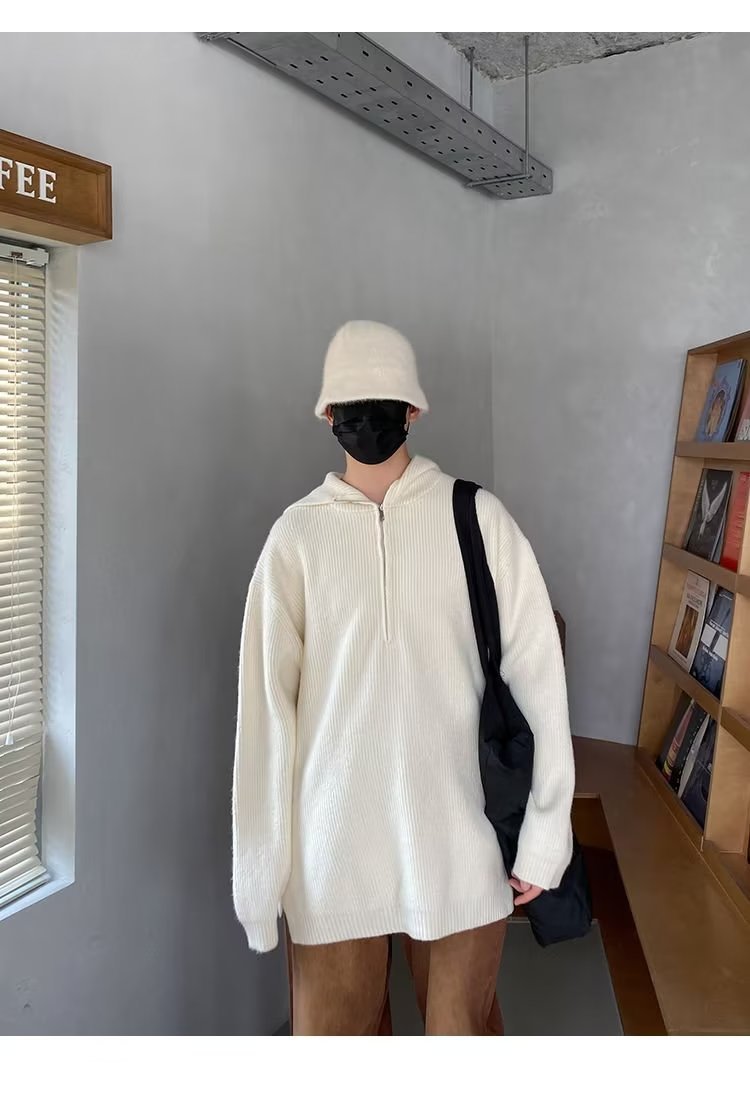 2023 가을과 겨울 반 지퍼 후드 스웨터 남성 겨울 한국 스타일 게으른 스타일 스웨터 오버 사이즈 코트 패션