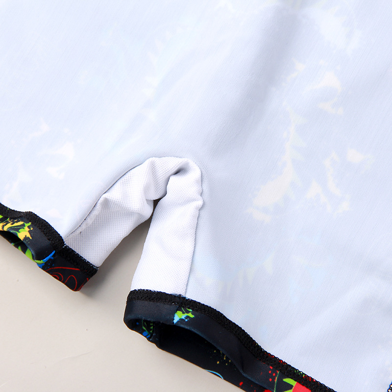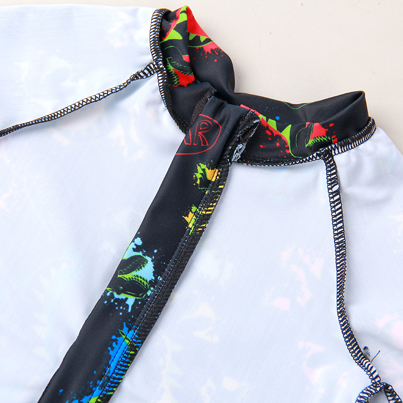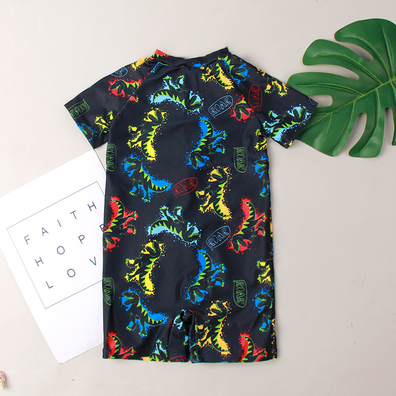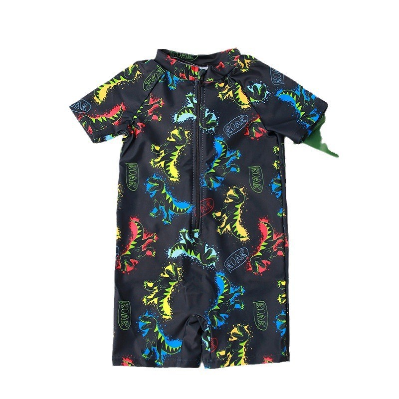어린이 수영복 소년 수영복 반팔 반바지 작은 칼라 지퍼 블랙 공룡 중간 아이 빠른 건조 수영복