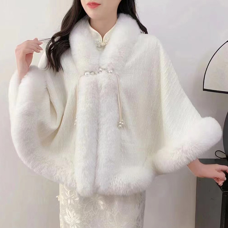 국가 스타일 가을과 겨울 새로운 cheongsam 한푸 외부 목도리 벨벳 두꺼운 모피 칼라 니트 작은 코트 따뜻한 망토스토어 가기