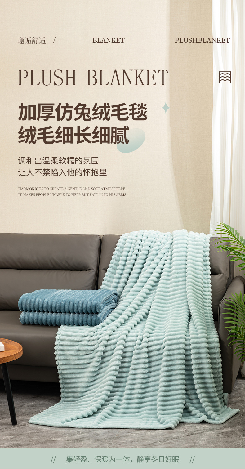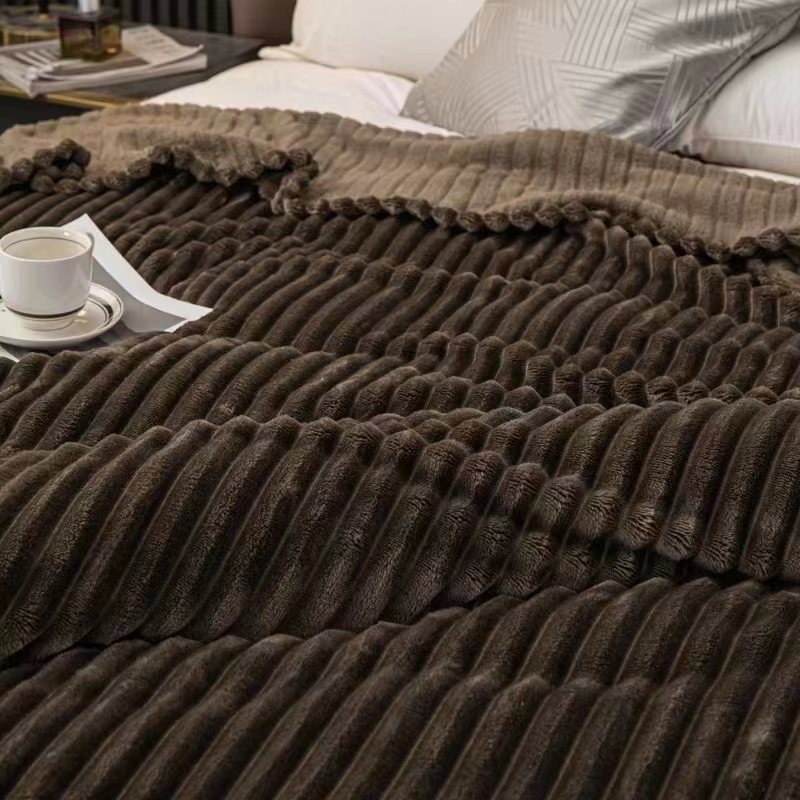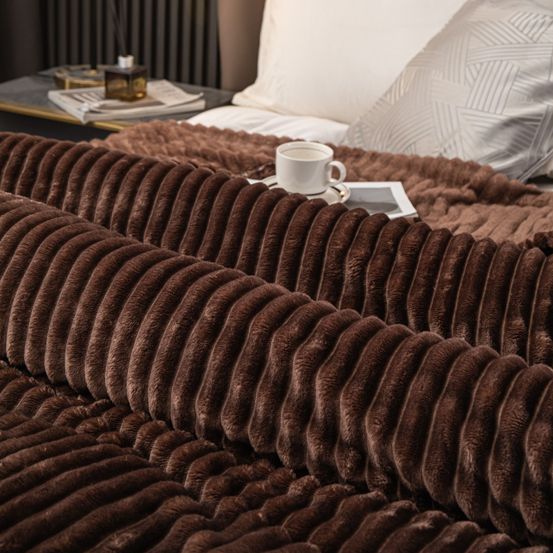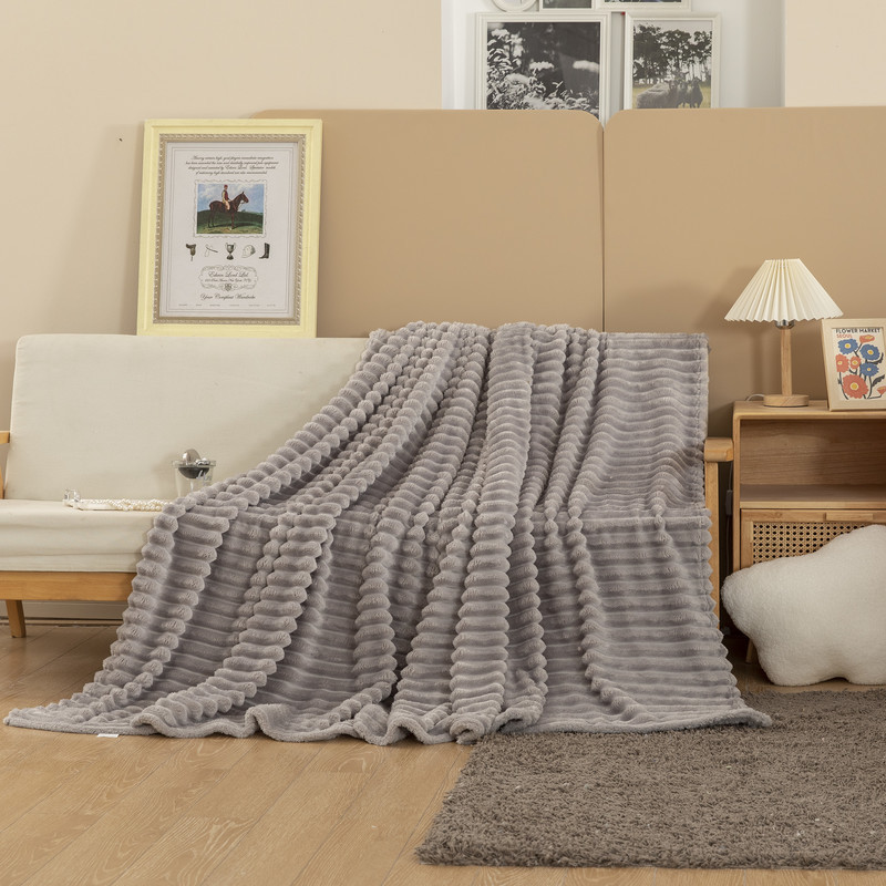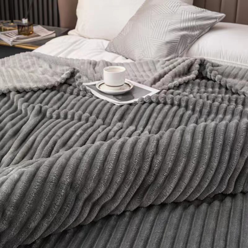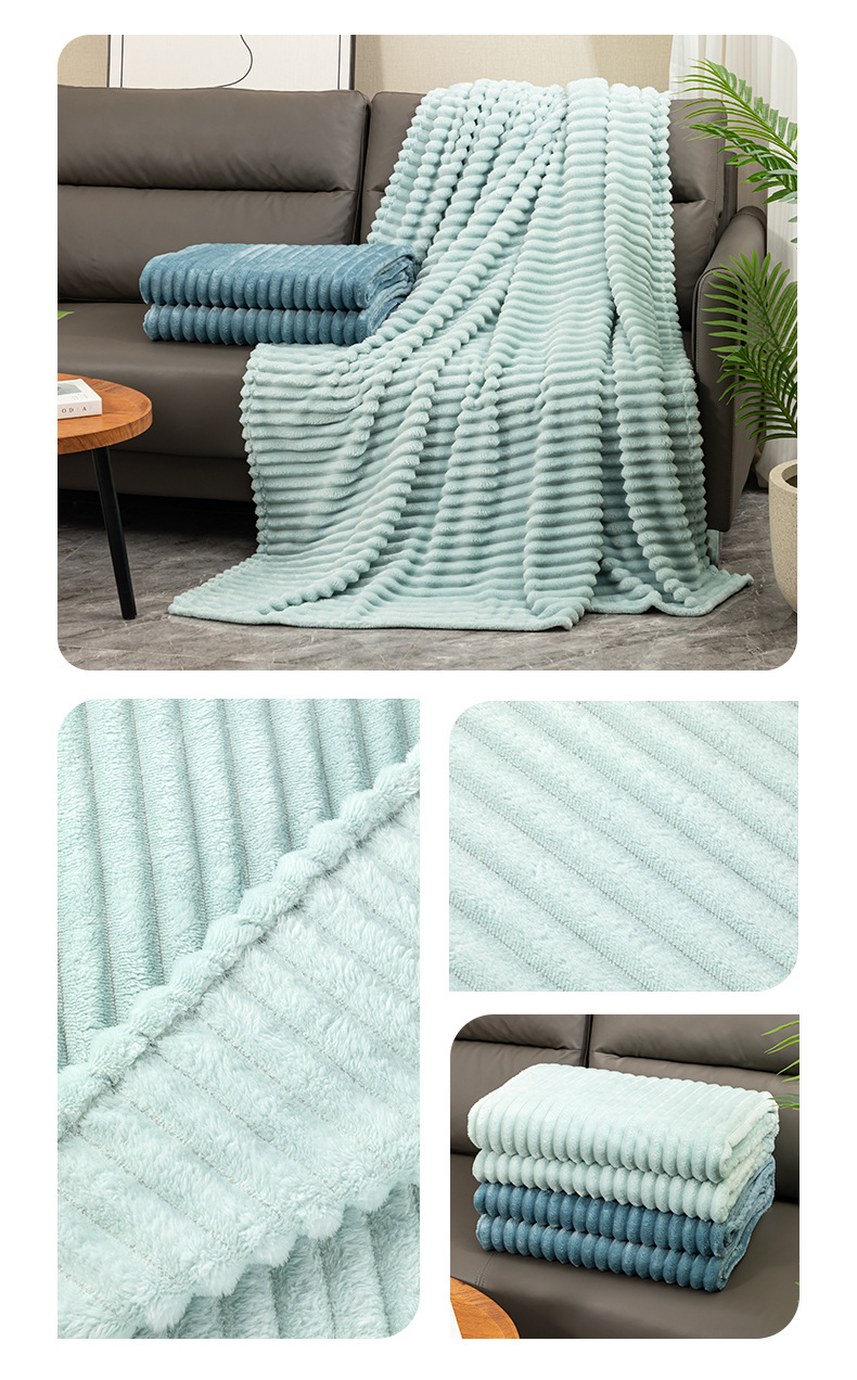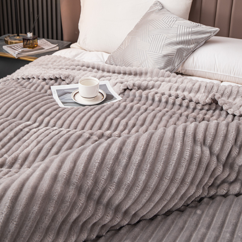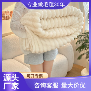 새로 업그레이드된 두꺼운 플란넬 토끼털 낮잠 담요, 스트라이프 마법 벨벳 모조 토끼털 담요, 편안함스토어 가기
