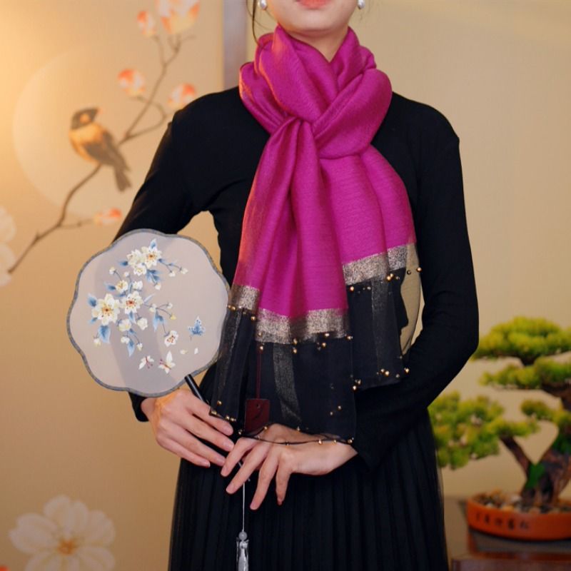 여성용 실크 울 비즈 스카프 가을과 겨울 다재다능한 패션 봄과 가을 우아한 스카프 진주 스카프 숄 겉옷 이중 사용스토어 가기