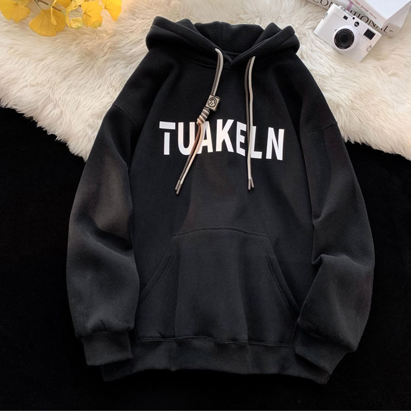 편지 인쇄 후드 스웨터 남성 겨울 두껍게 미국 복고풍 무거운 하이 스트리트 패션 브랜드 인 탑 코트