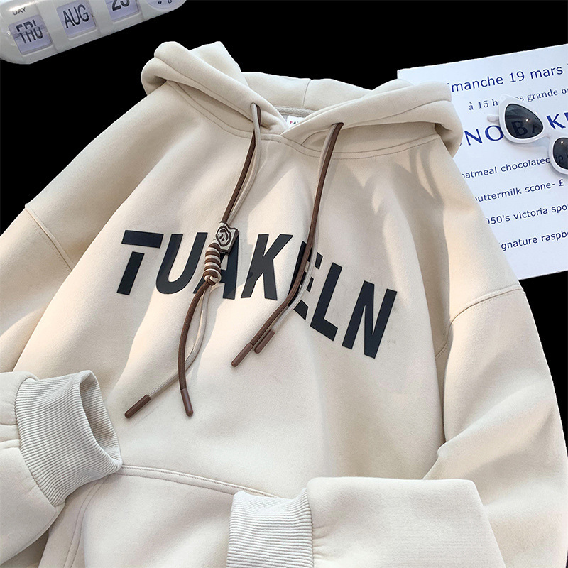 편지 인쇄 후드 스웨터 남성 겨울 두껍게 미국 복고풍 무거운 하이 스트리트 패션 브랜드 인 탑 코트스토어 가기