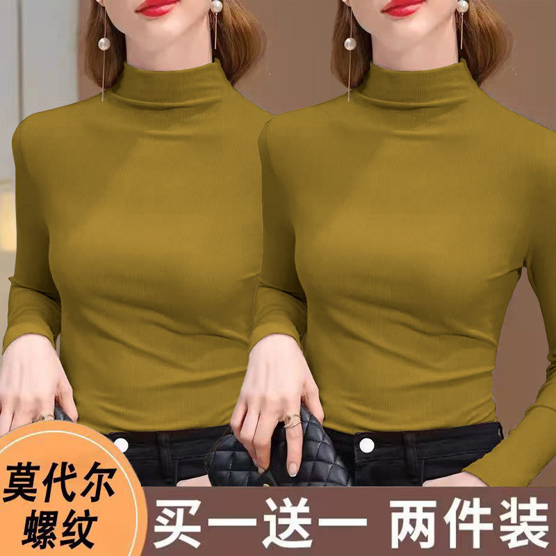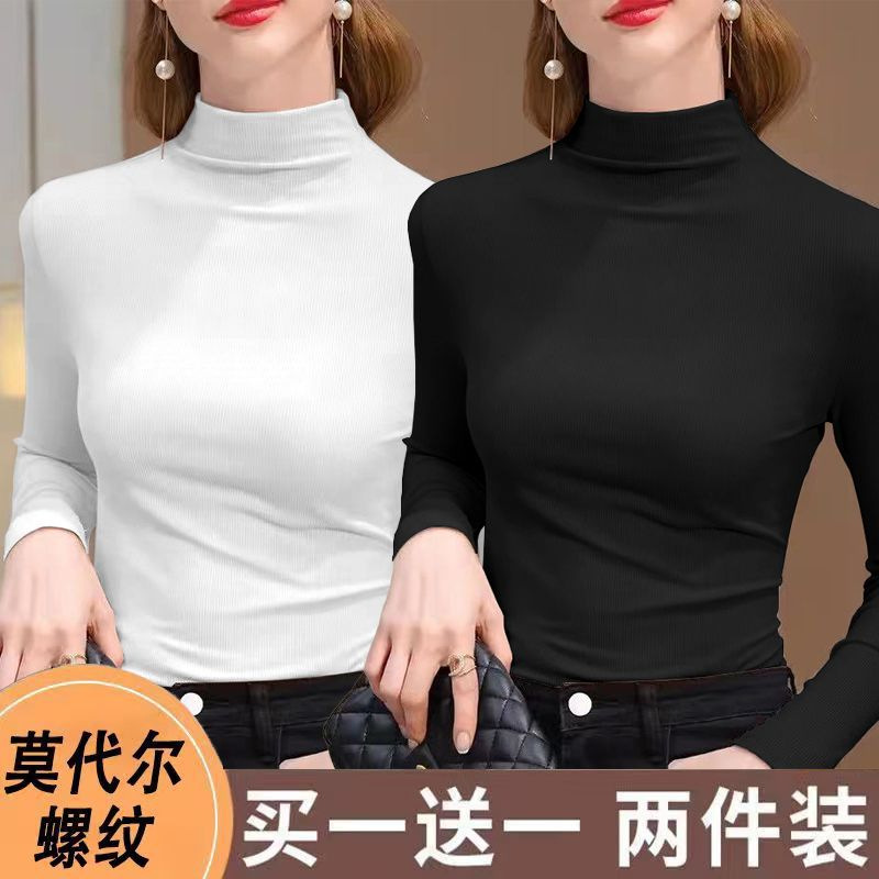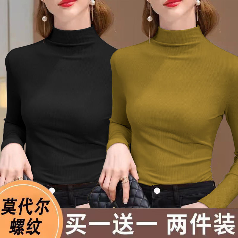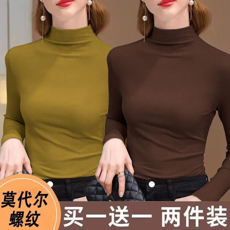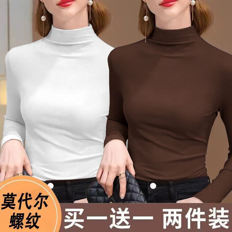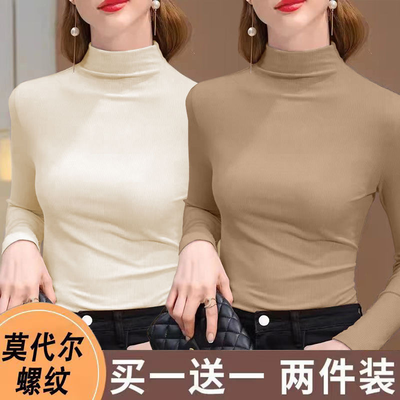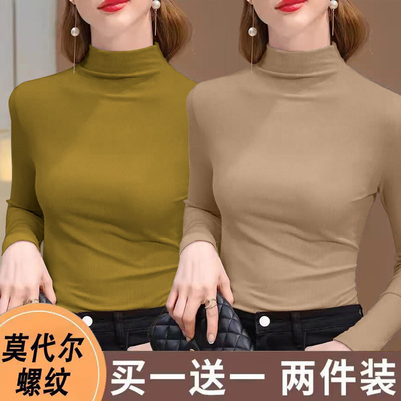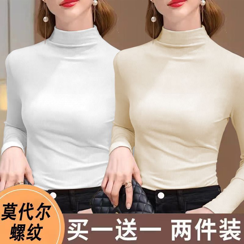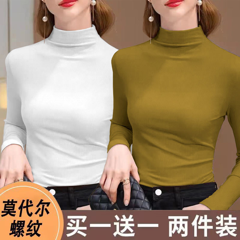 실 반 터틀넥 바닥 셔츠 세련된 서양식 가을과 겨울 슬림 핏 내부 긴 소매 티셔츠 여성용 탑스토어 가기