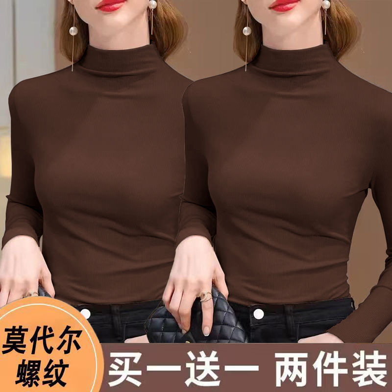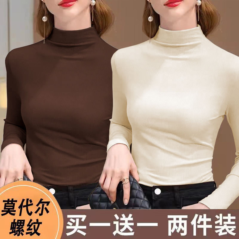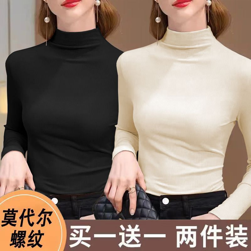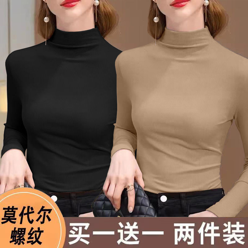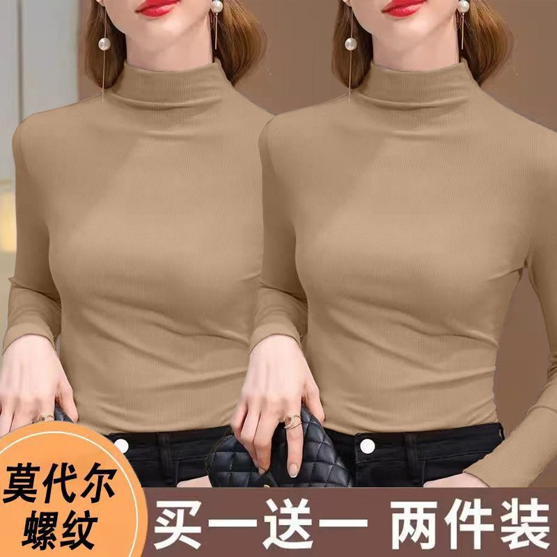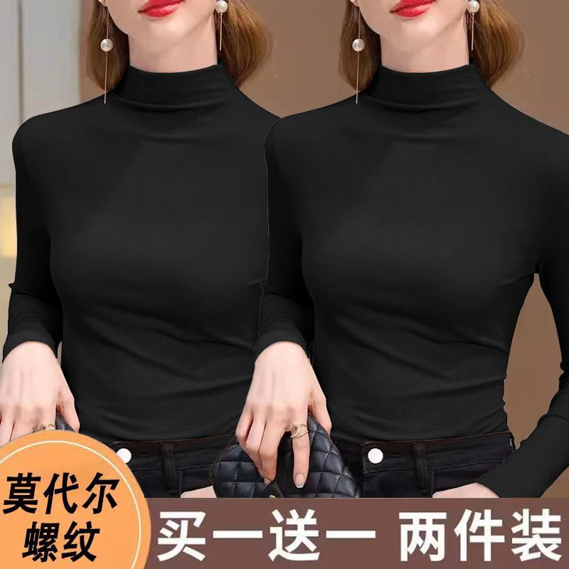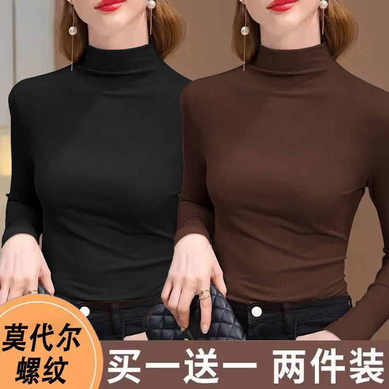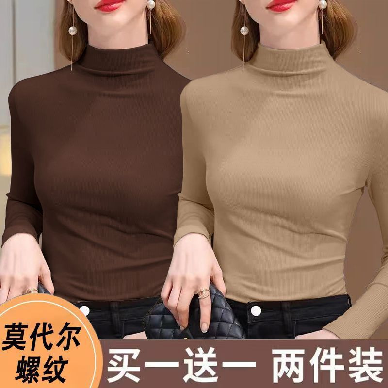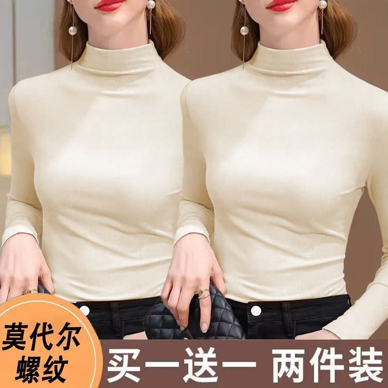 실 반 터틀넥 바닥 셔츠 세련된 서양식 가을과 겨울 슬림 핏 내부 긴 소매 티셔츠 여성용 탑스토어 가기