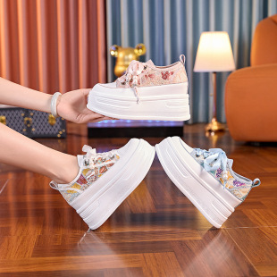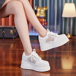 小白鞋女2024年夏季新款时尚百搭网纱透气休闲板鞋厚底内增高女鞋