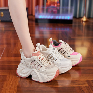 老爹鞋女2024夏季新款网面镂空运动鞋厚底显脚小个子内增高女鞋子