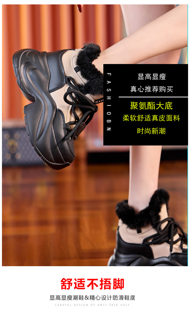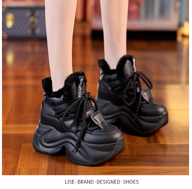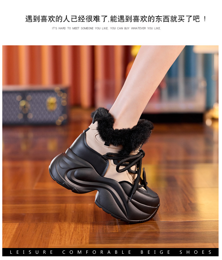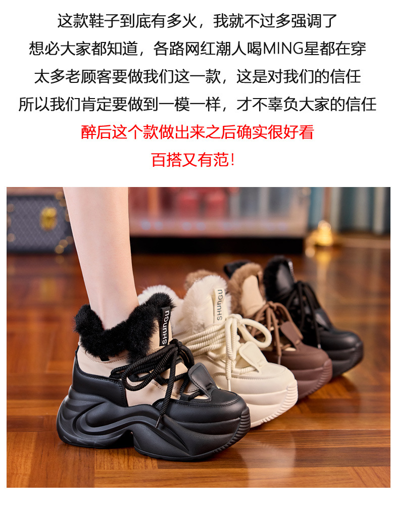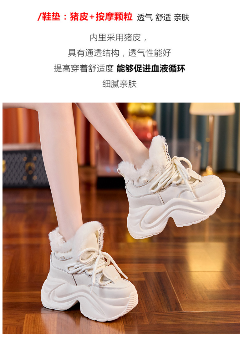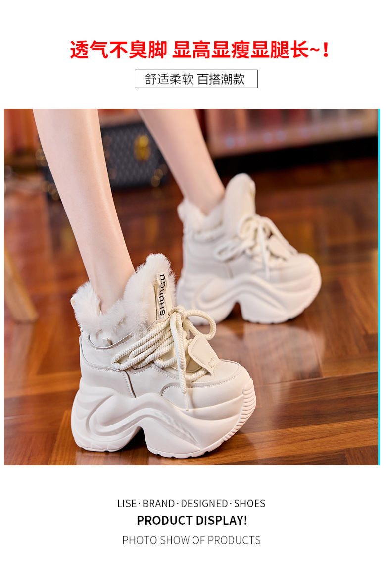 새로운 겨울 캐주얼 두꺼운 패션 올 매칭 기모 높이 증가 여성 신발 패션 2023 여성을위한 숨겨진 높이 증가 운동화스토어 가기