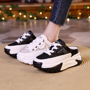 包头凉拖鞋女外穿2024年夏季新款厚底半拖内增高无后跟懒人运动鞋