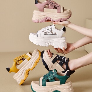 厚底内增高跟包头凉鞋女鞋女士2024年夏季新款爆坡跟松糕罗马运动