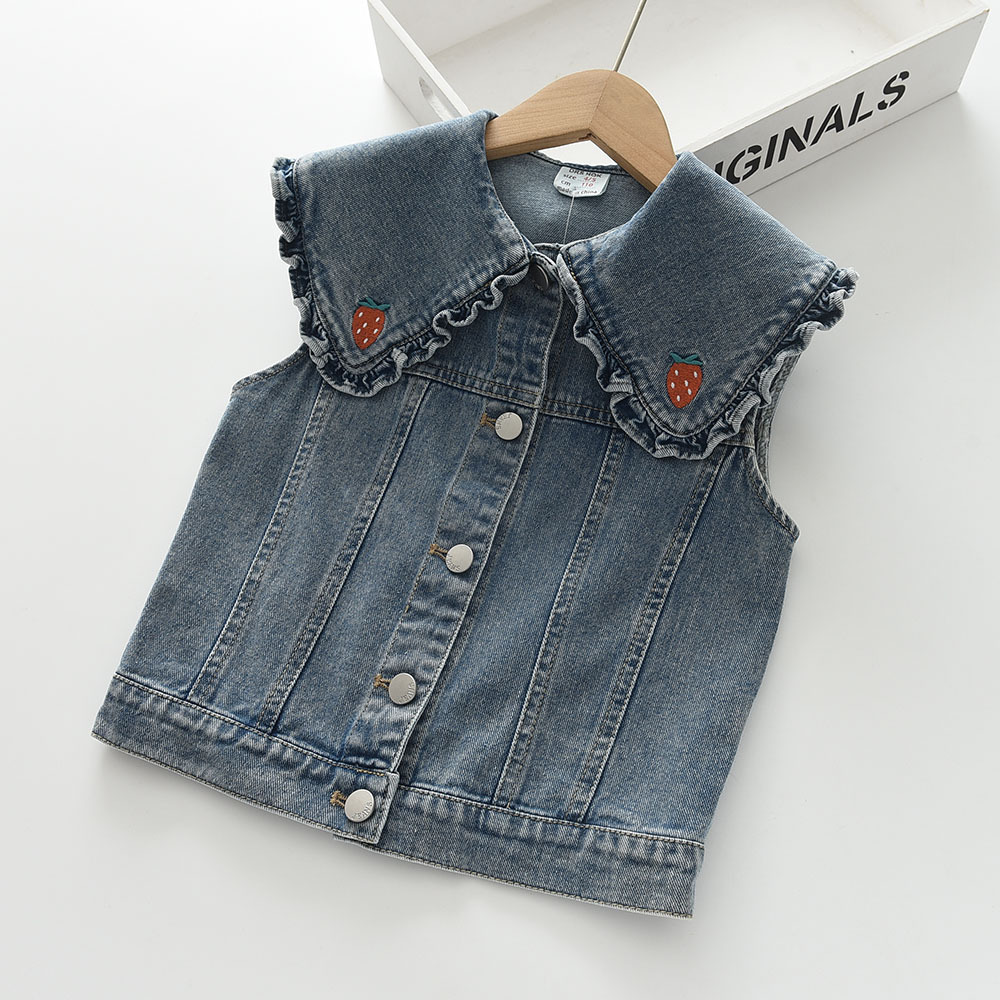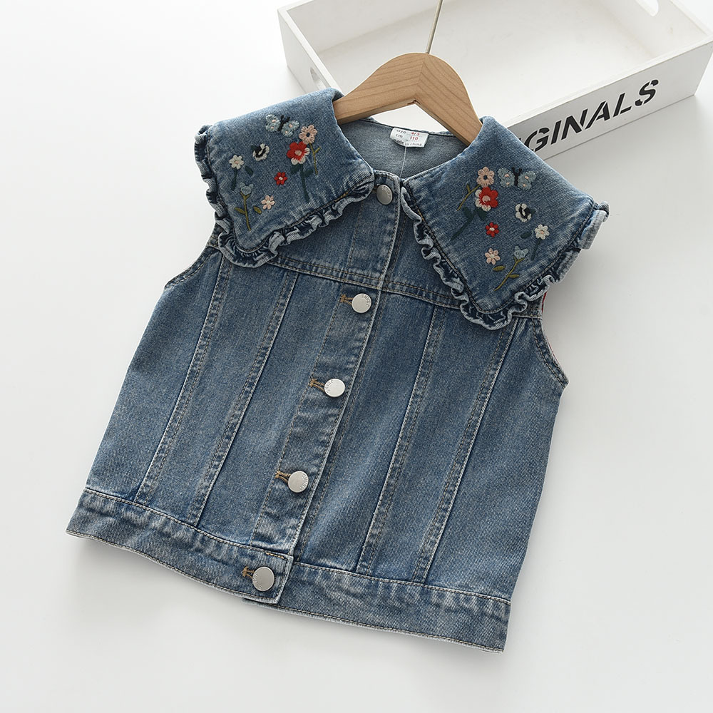 2023秋季新款 花朵刺绣 女童纯棉水洗牛仔马甲