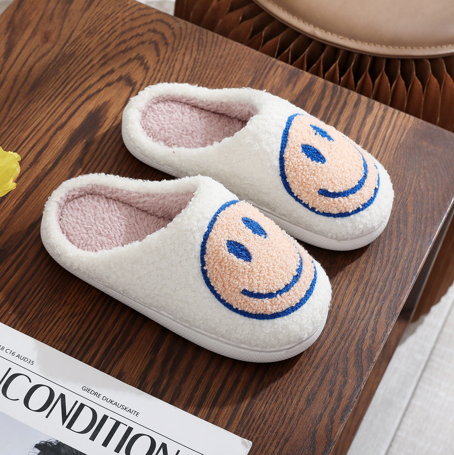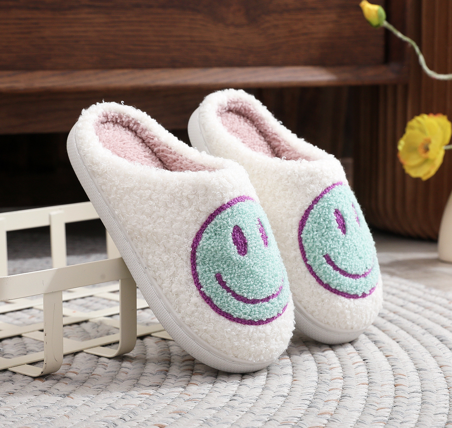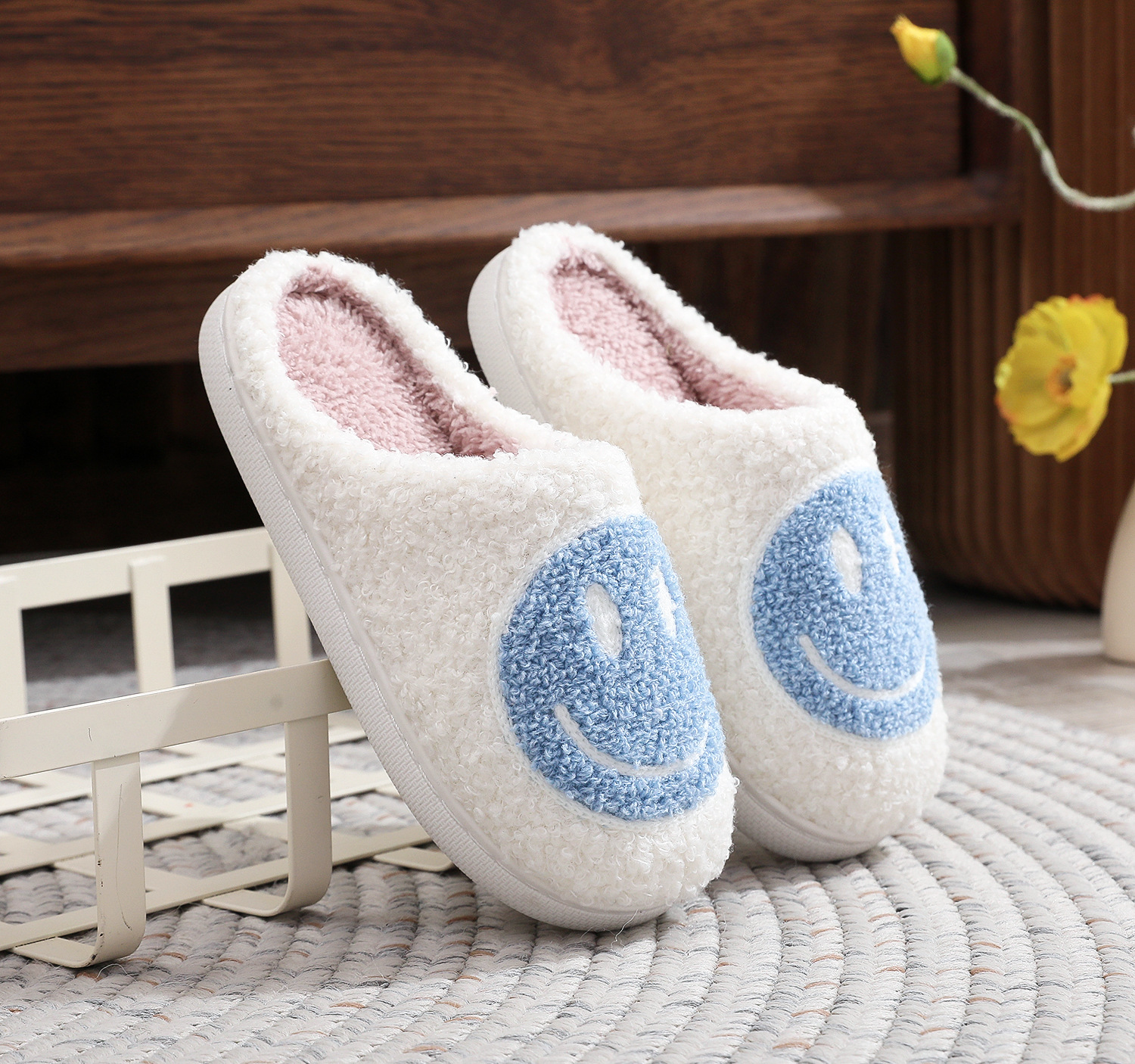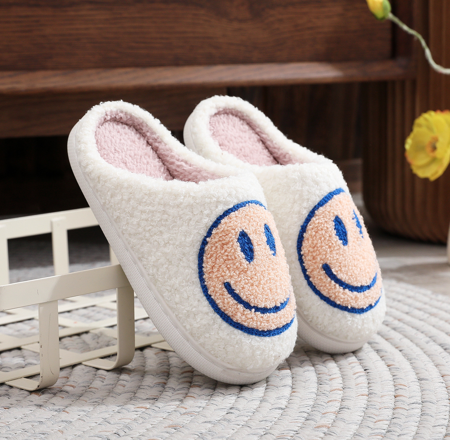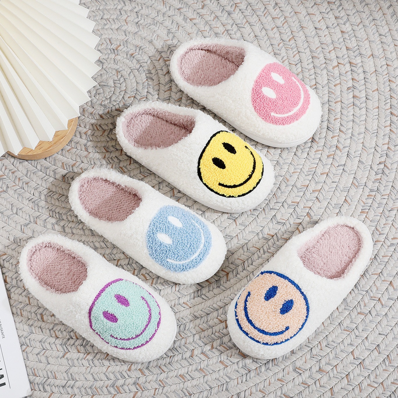 • 어린이 면화 슬리퍼-웃는 얼굴 (고기 가루)