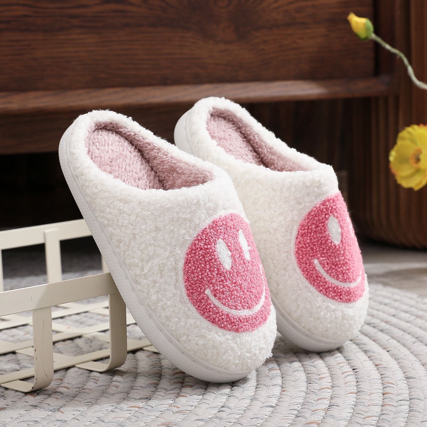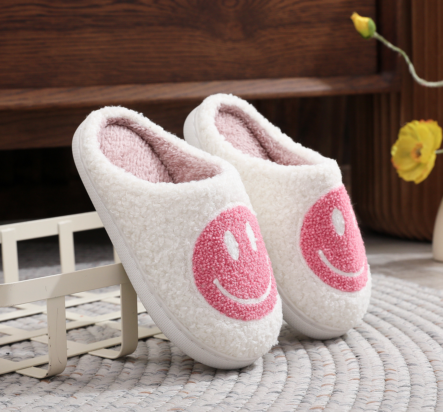 • 어린이 면화 슬리퍼-웃는 얼굴 (핑크)