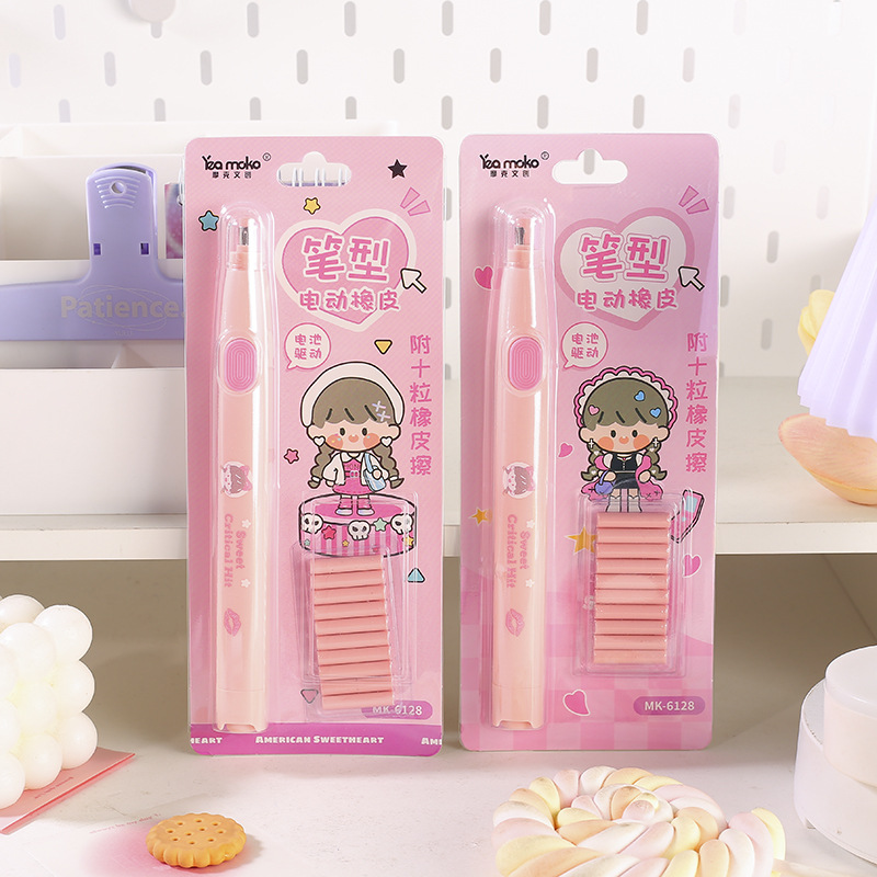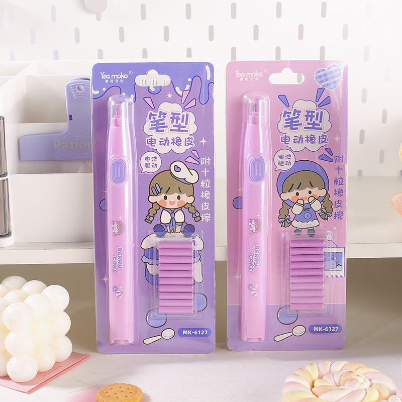 작은 라운드 전기 지우개 귀여운 소녀 라운드 케이크 전기 지우개 펜 막대 유형 배터리 지우개스토어 가기