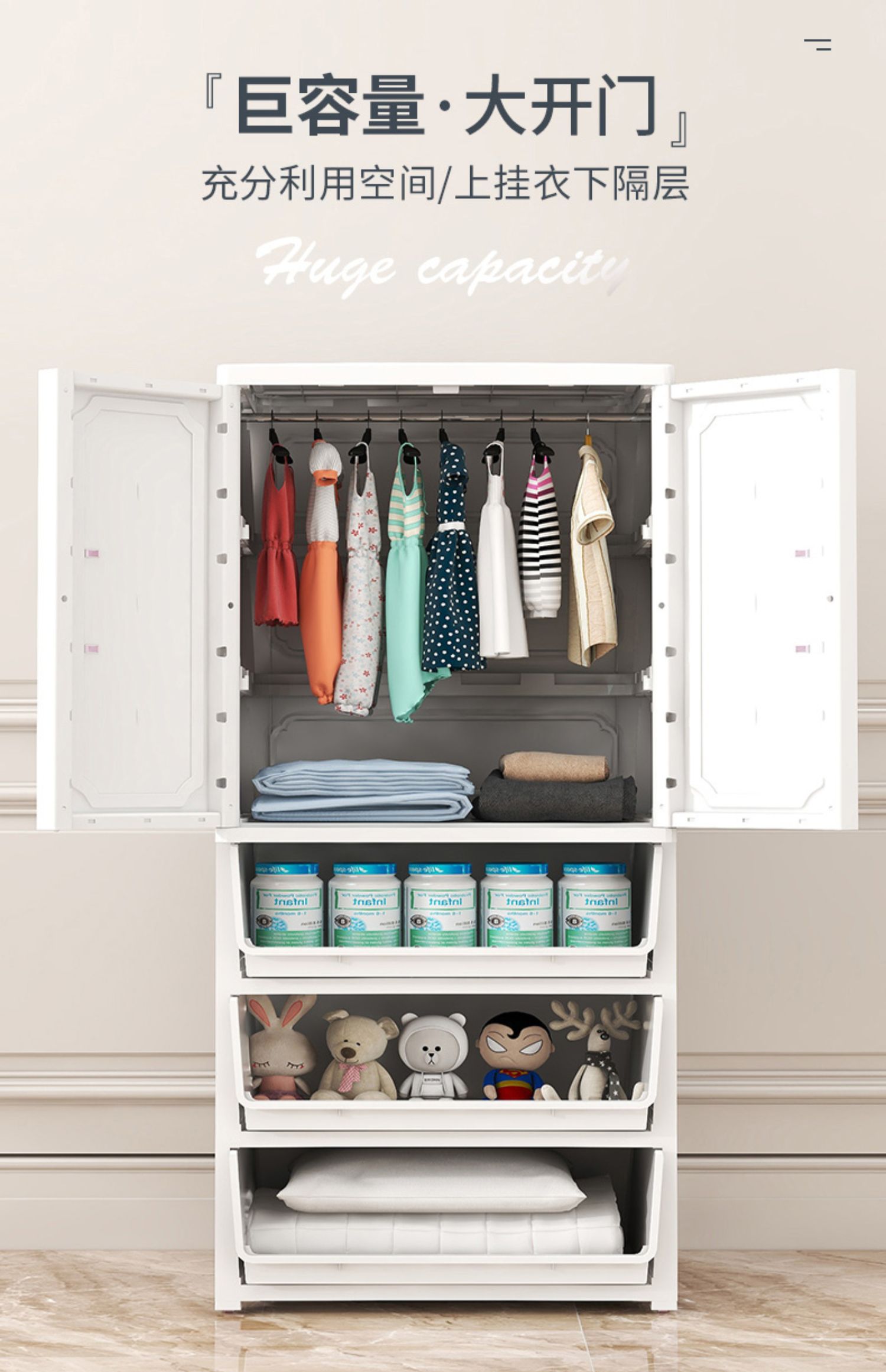아기 어린이 옷장 아기 간단한 소년 침실 집 매달려 옷 조립 보관 캐비닛 플라스틱 작은 옷장 문