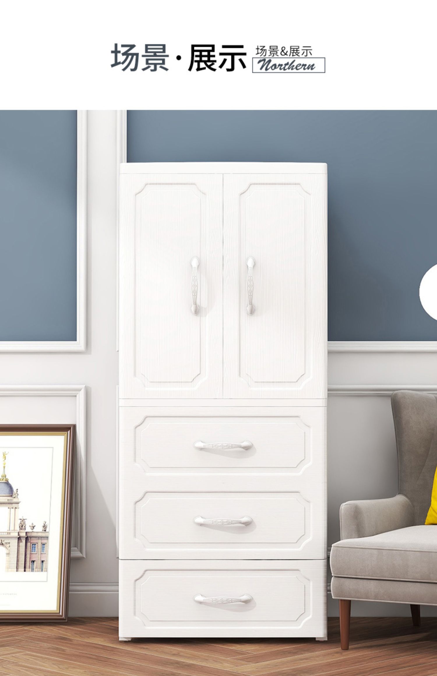 • 우드 그레인 화이트 [싱글 도어 교수형 옷 + 3 서랍]]