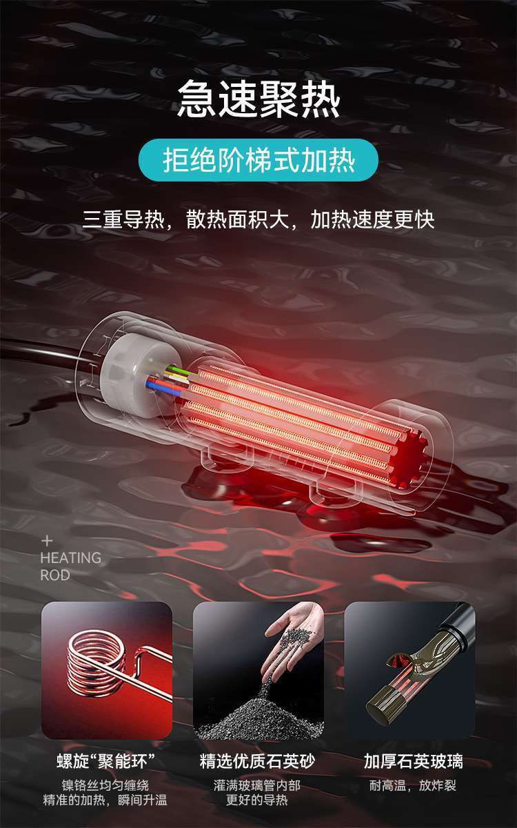 Chuangning 물고기 탱크 작은 가열 막대 CN603 석영 절전 거북이 탱크 온도 조절기 외부 온도 조절 절연로드