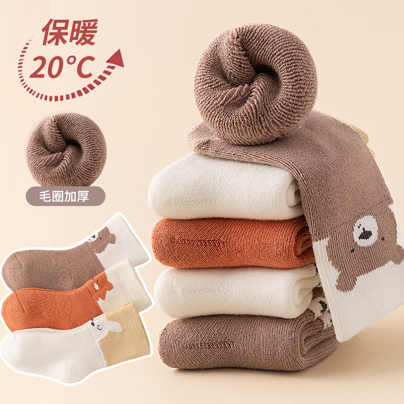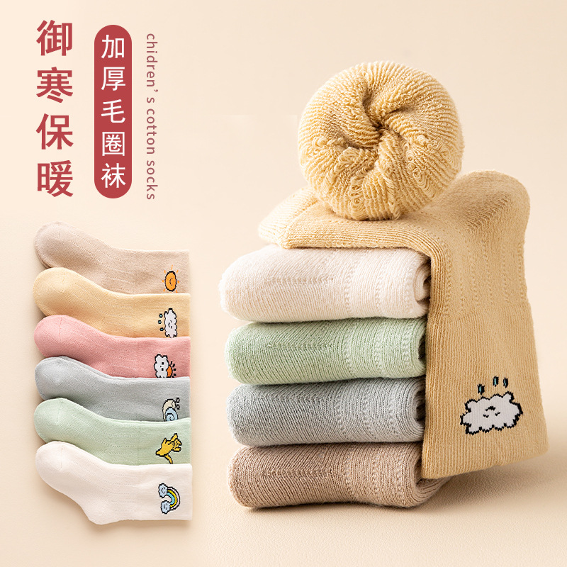 아기 양말 겨울 새로운 신생아 만화 신생아 아기가 두껍게 테리 따뜻한 중간 송아지 양말 도매스토어 가기