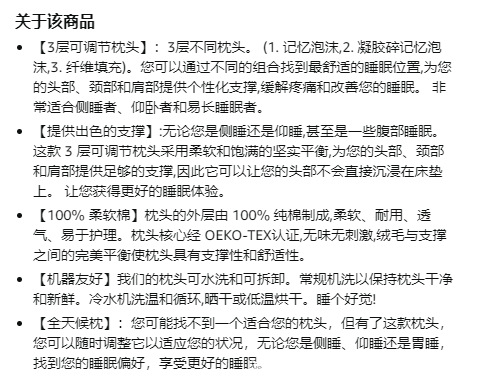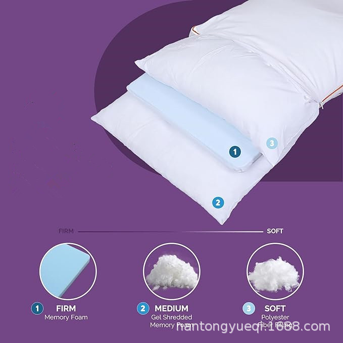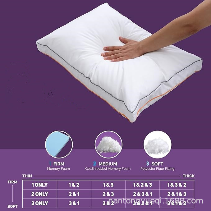 조정 가능한 3 층 수면 베개 깨진 메모리 폼 침대 베개 3 조각 이동식 빨 100% 면