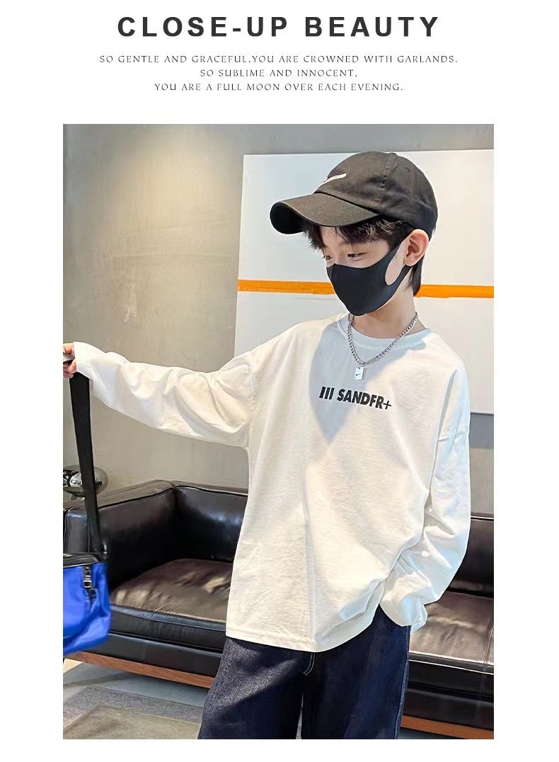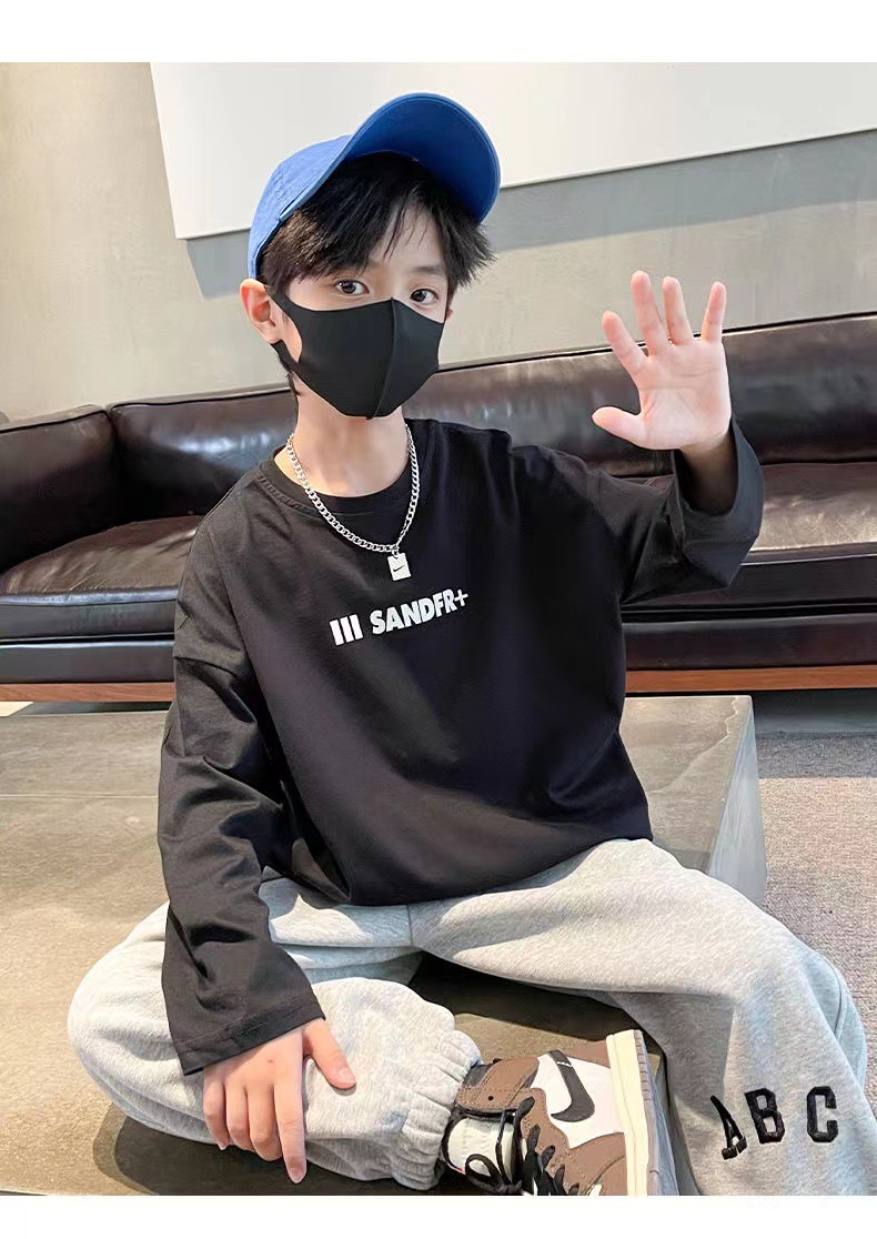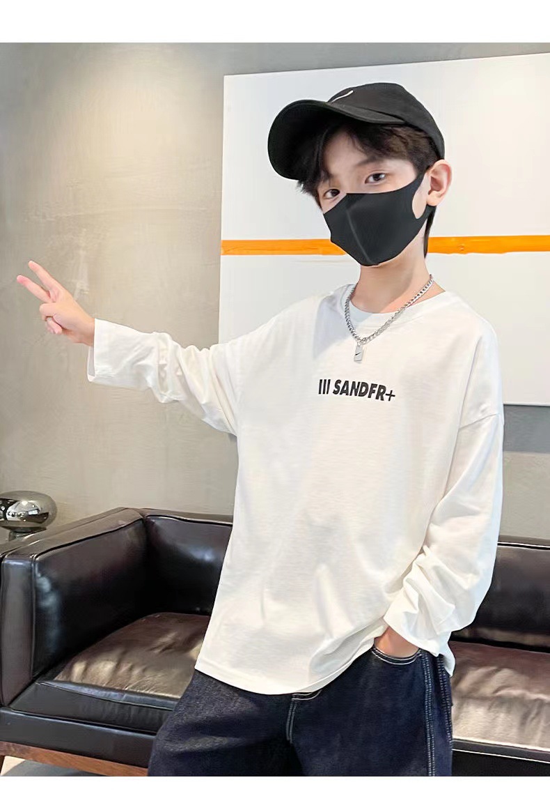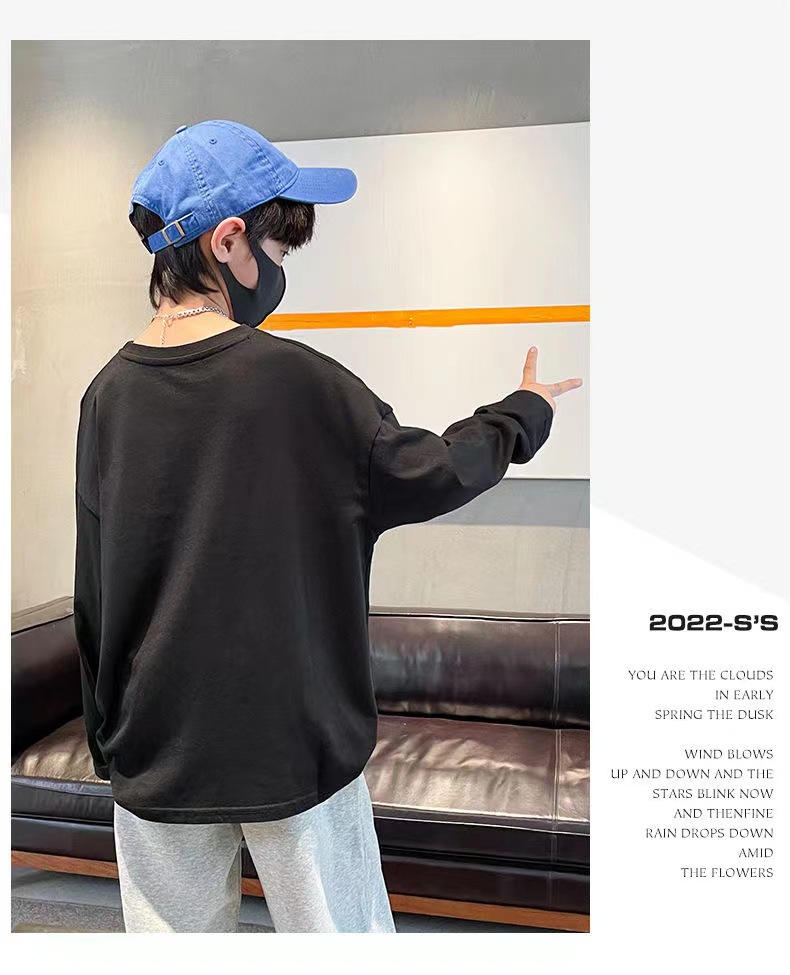 100% 코튼 보이즈의 봄과 가을 티셔츠 2023 한국식 트렌디 한 중대형 어린이 올 매치 탑 어린이 바닥 셔츠스토어 가기