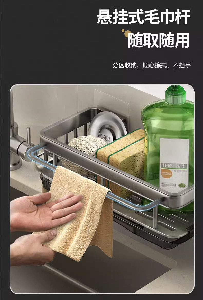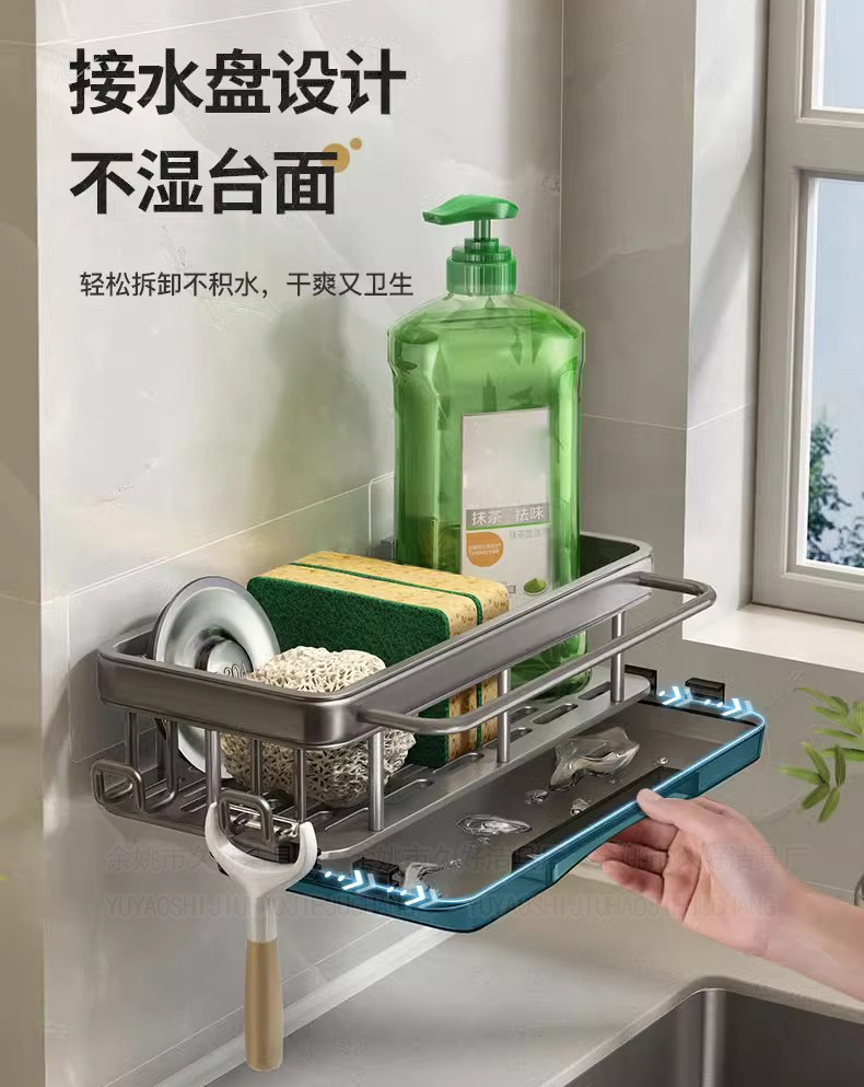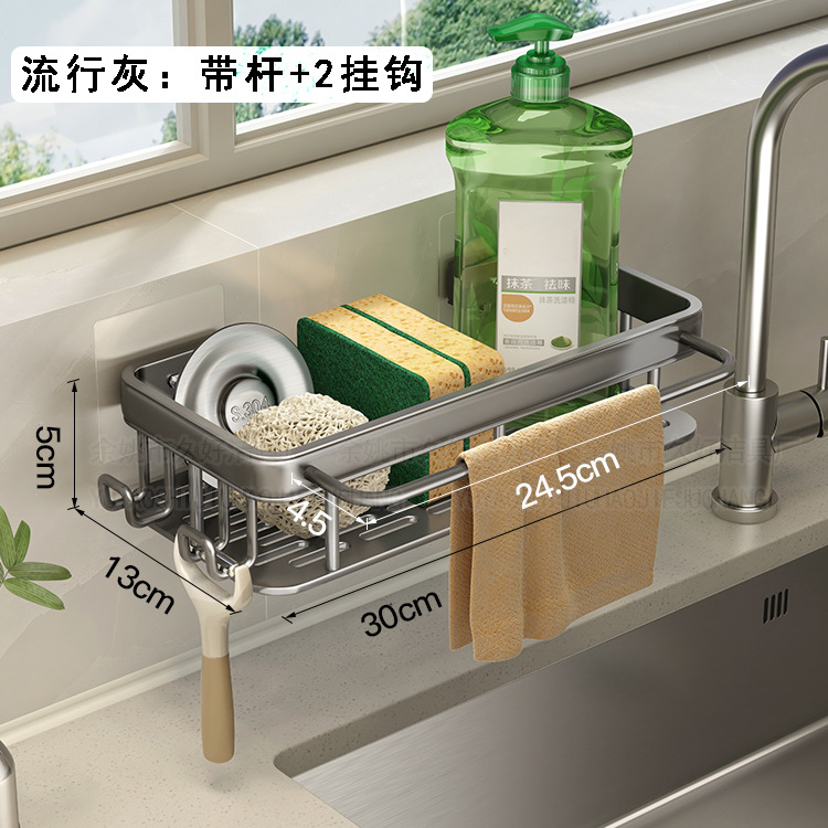 천 랙 주방 보관 랙 펀치없는 벽 장착 풀 스폰지 천 건조 바구니 공간 알루미늄 랙