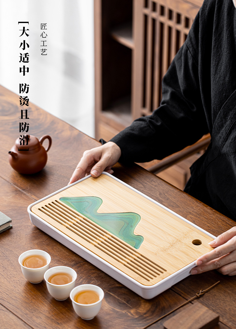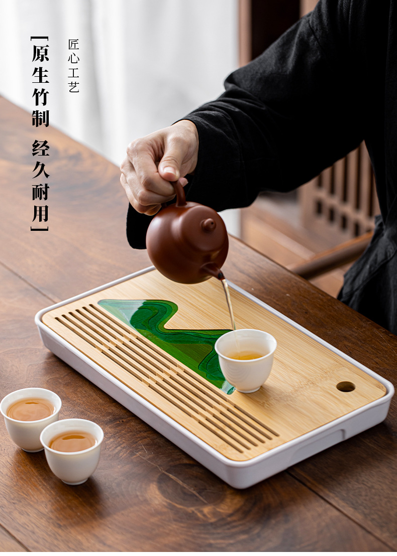 차 쟁반 배수 트레이 쿵푸 차 세트 작은 차 테이블 한 사람을위한 가정용 간단한 대나무 물 저장 차 바다 건조 차 테이블