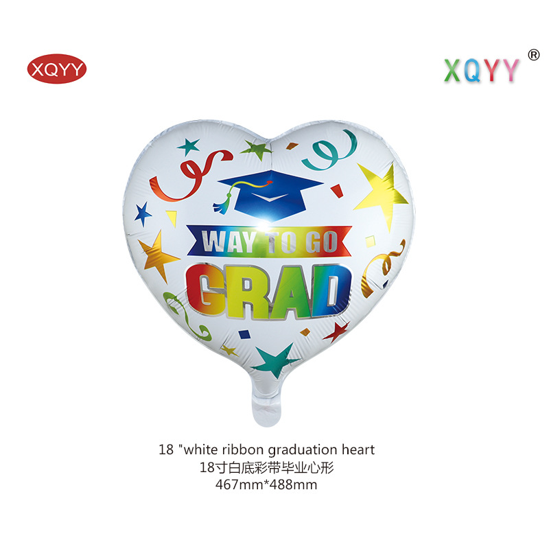 • 18 인치 흰색 배경 리본 졸업 심장 모양