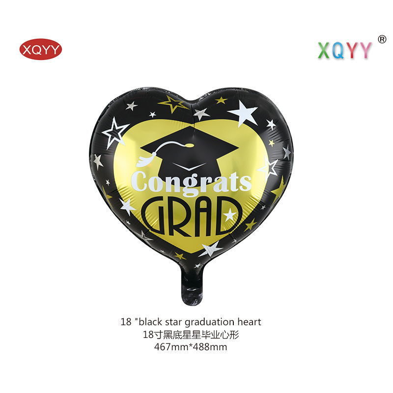 • 18 인치 검은 배경 스타 졸업 하트 모양