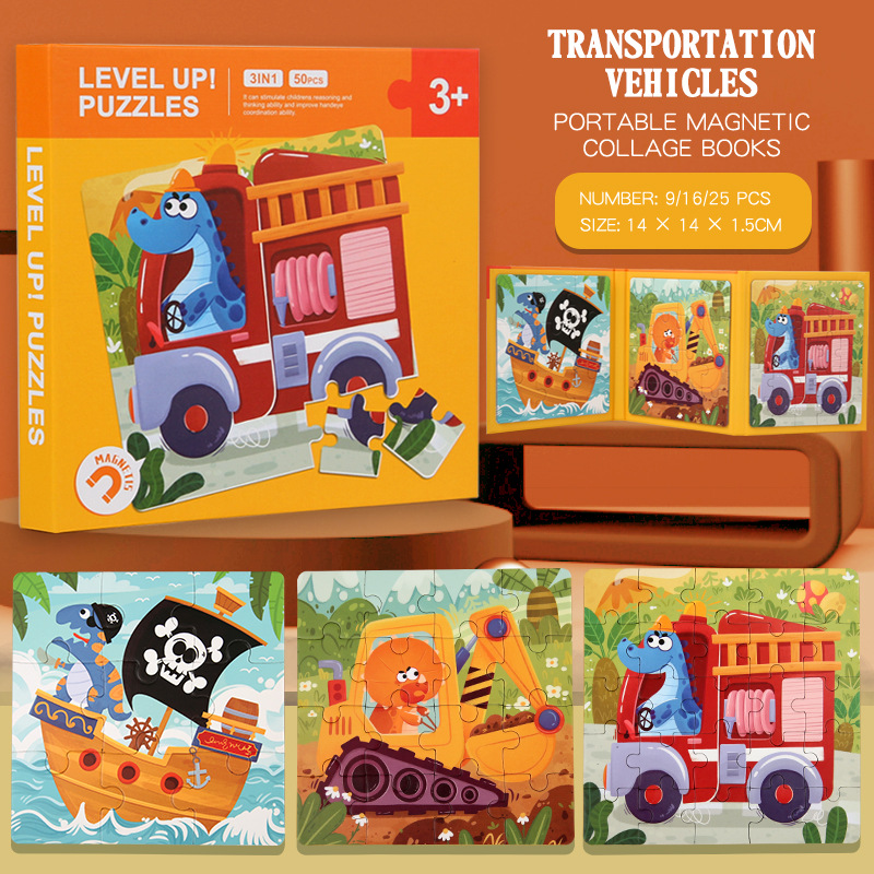 자석 9피스 종이 퍼즐 유치원 어린이 조기 교육 교구 동물 교통 자석 퍼즐 3-7세 장난감스토어 가기