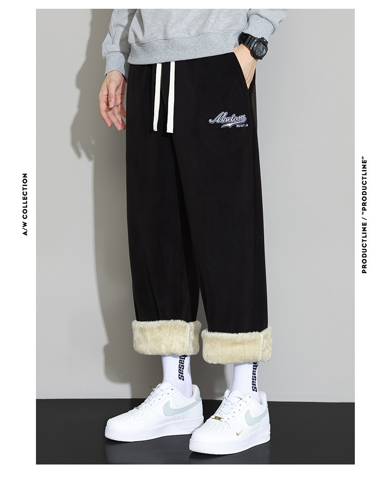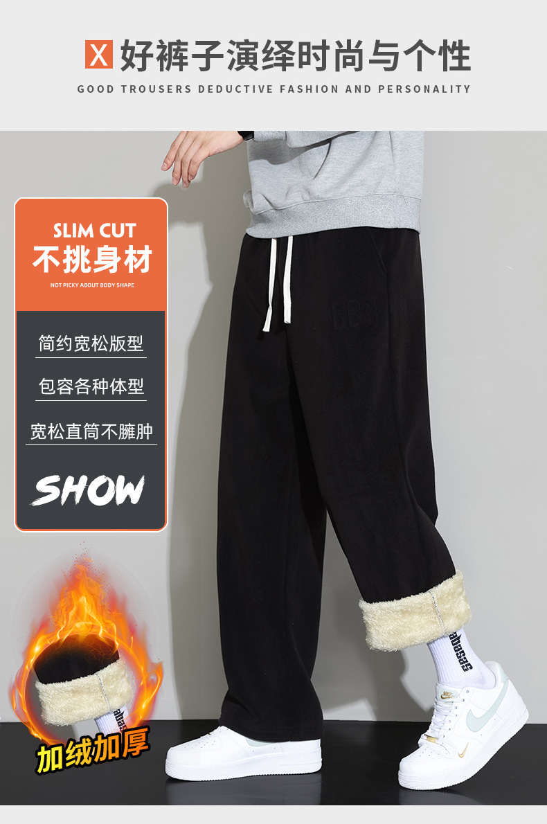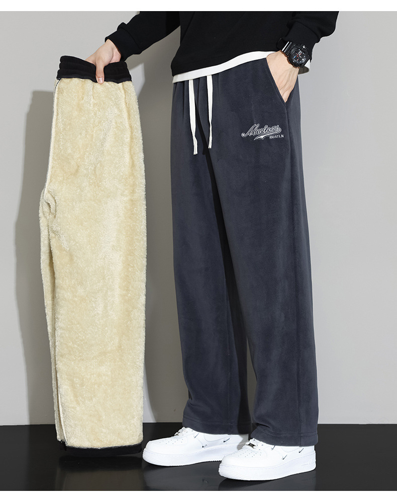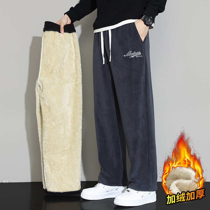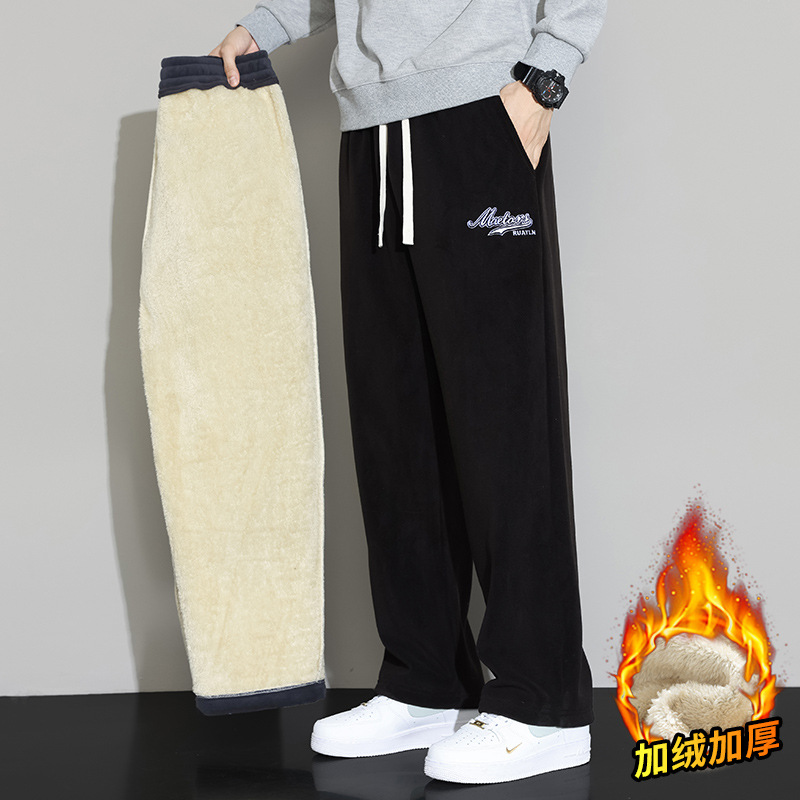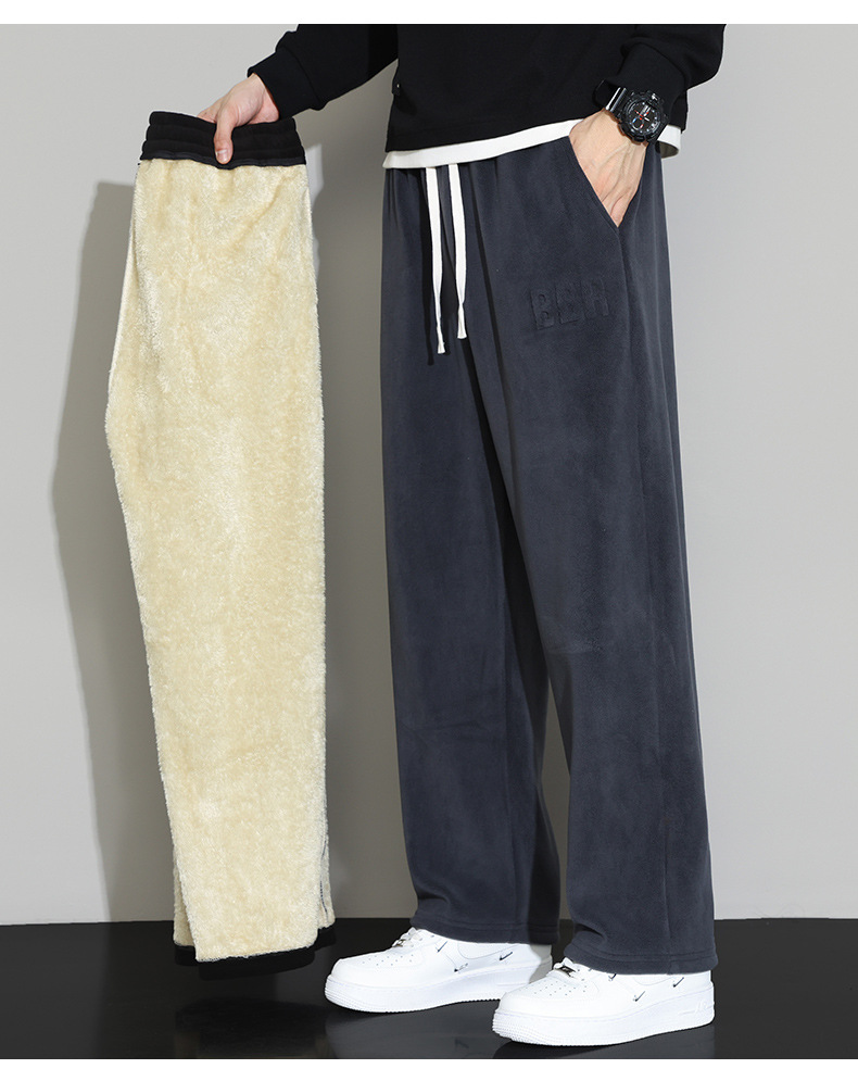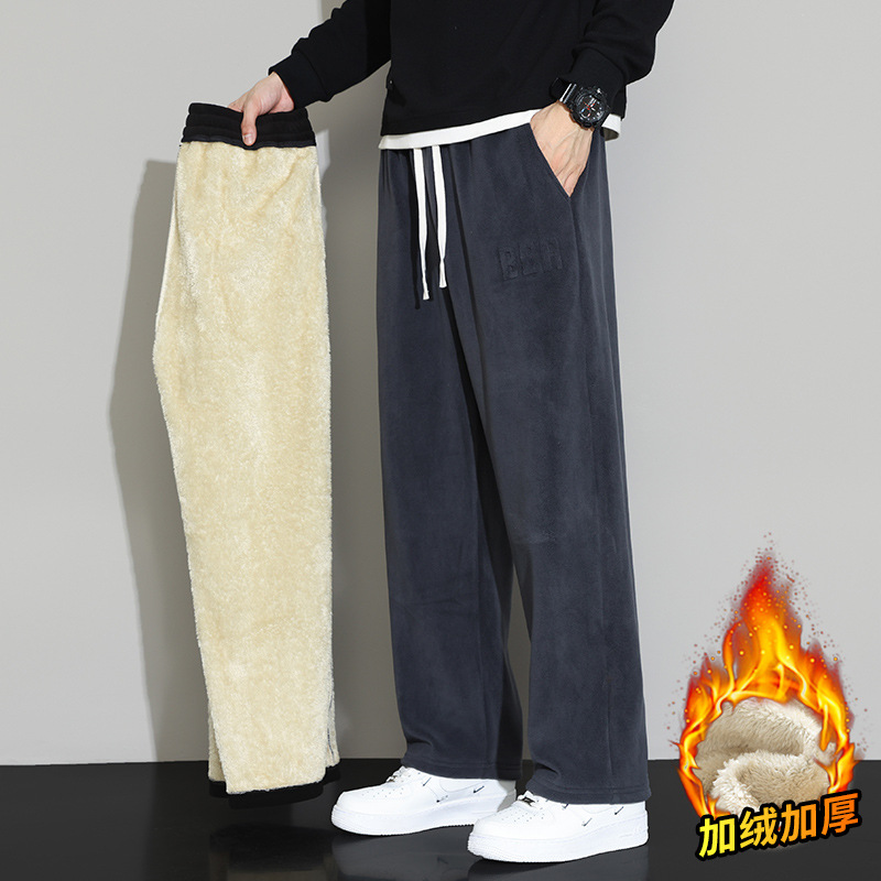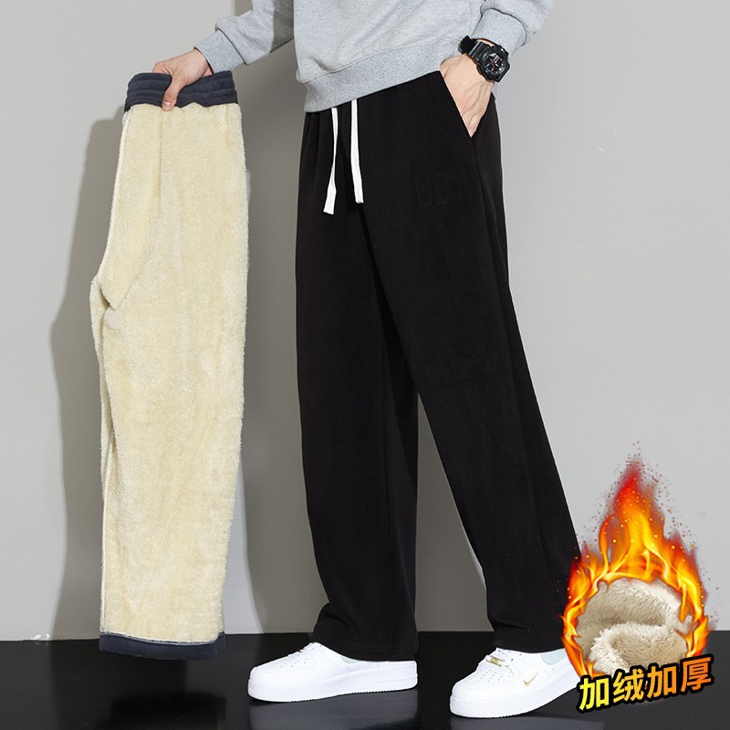 Lambswool 바지 남성 겨울 기모 두꺼운 따뜻한 바지 청소년 느슨한 넓은 다리 스트레이트 캐주얼 스웨트 팬츠