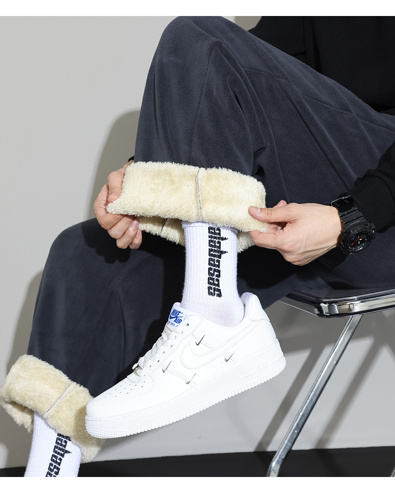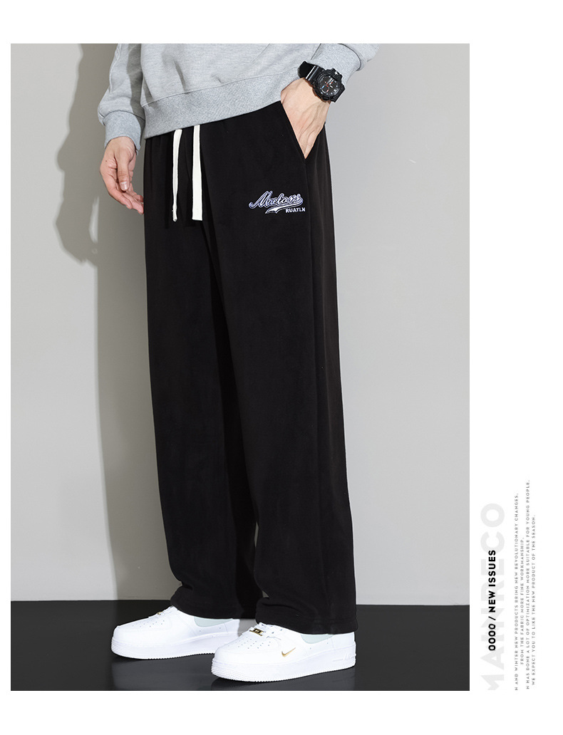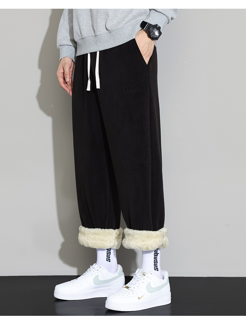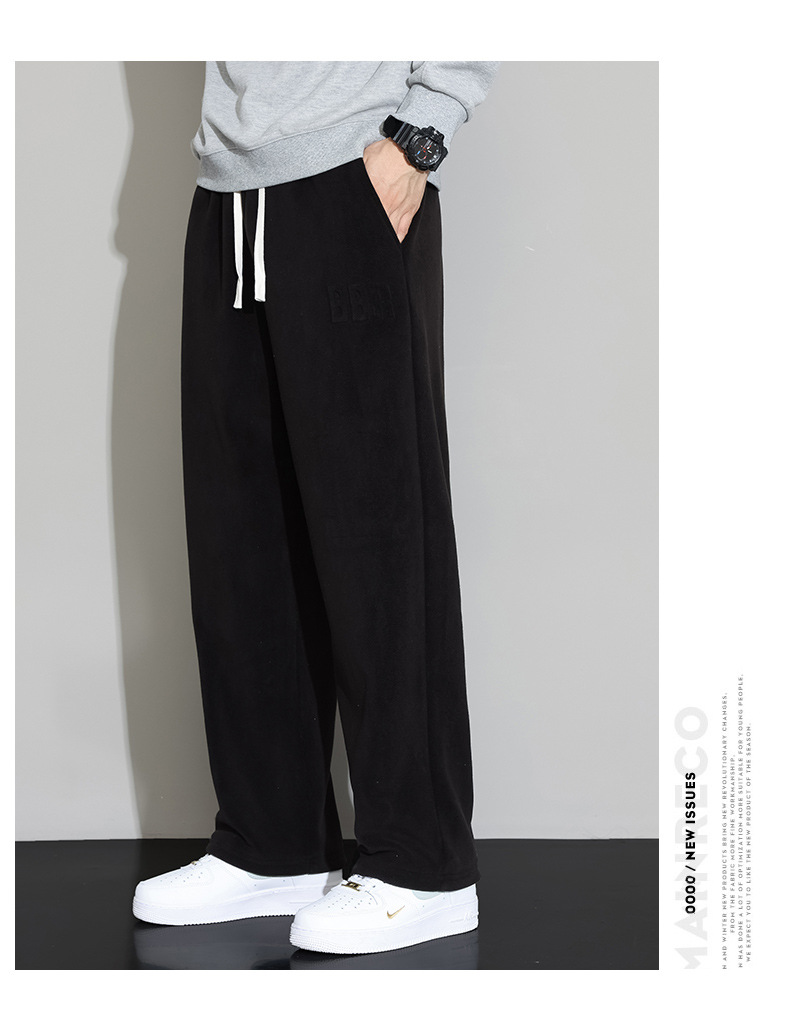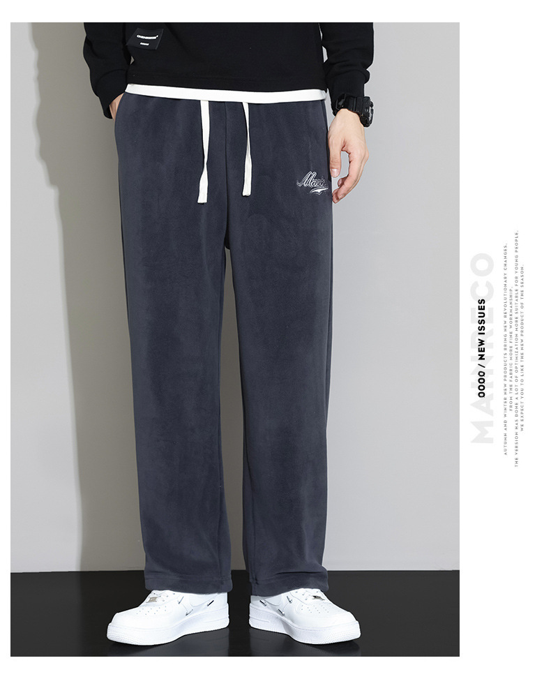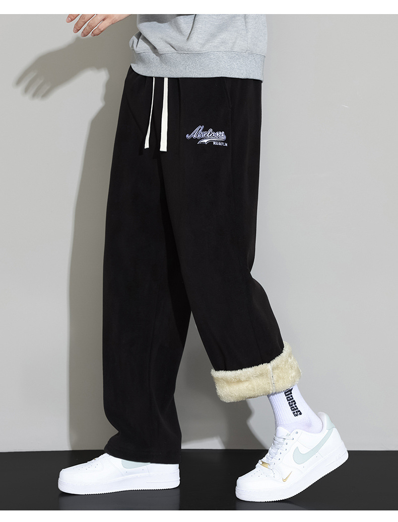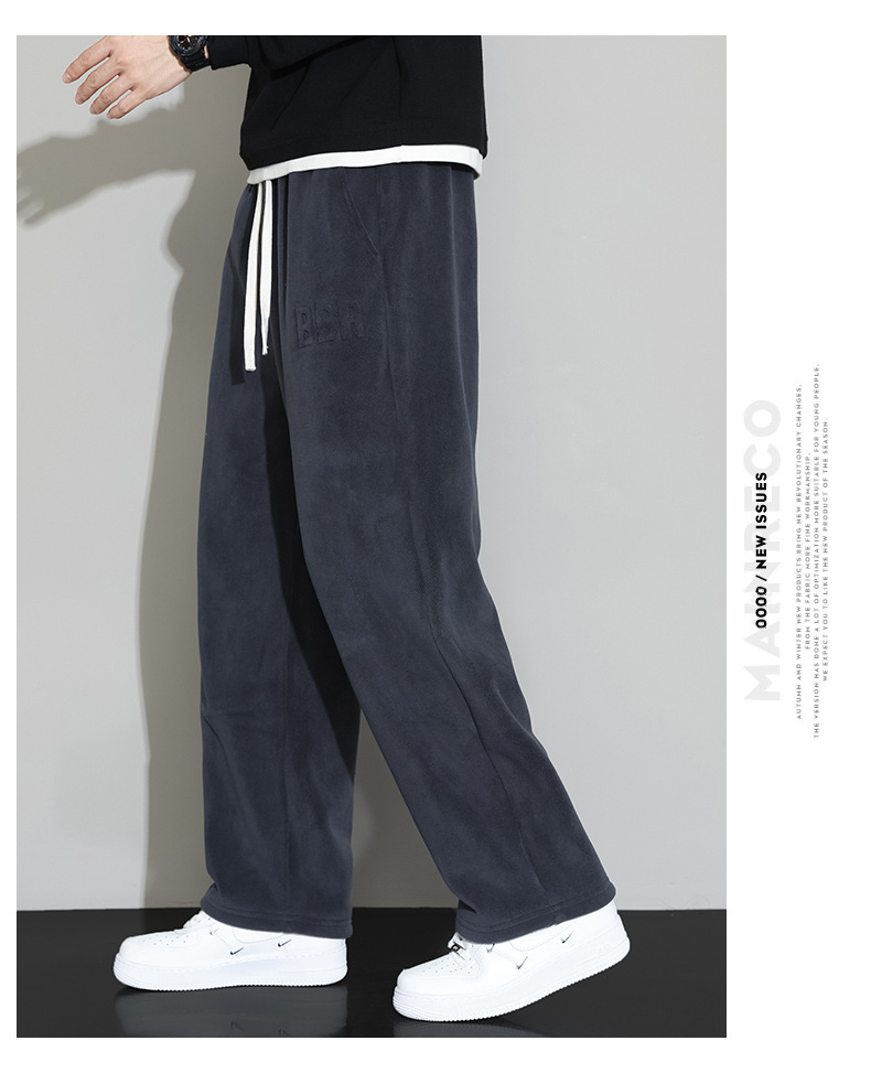 Lambswool 바지 남성 겨울 기모 두꺼운 따뜻한 바지 청소년 느슨한 넓은 다리 스트레이트 캐주얼 스웨트 팬츠