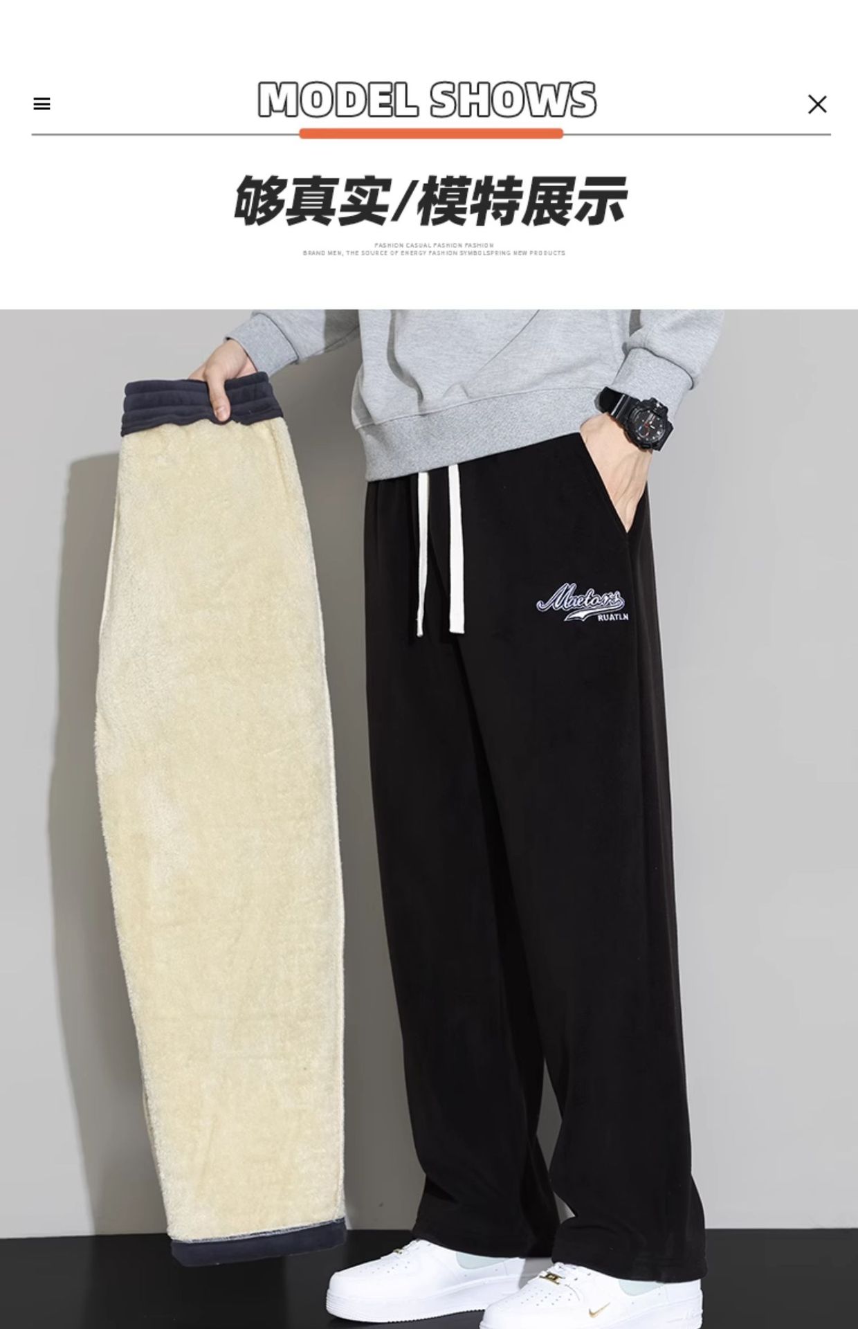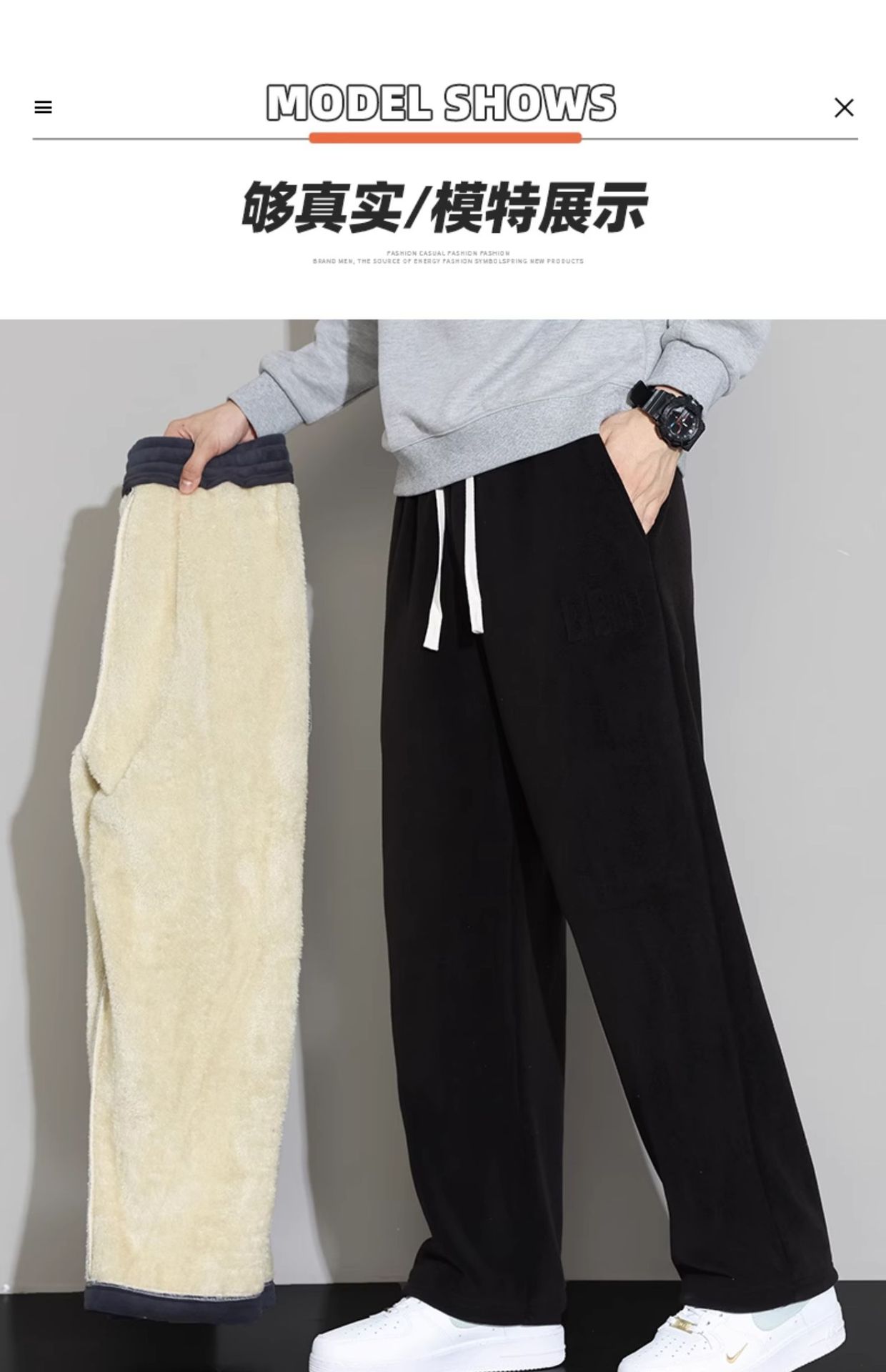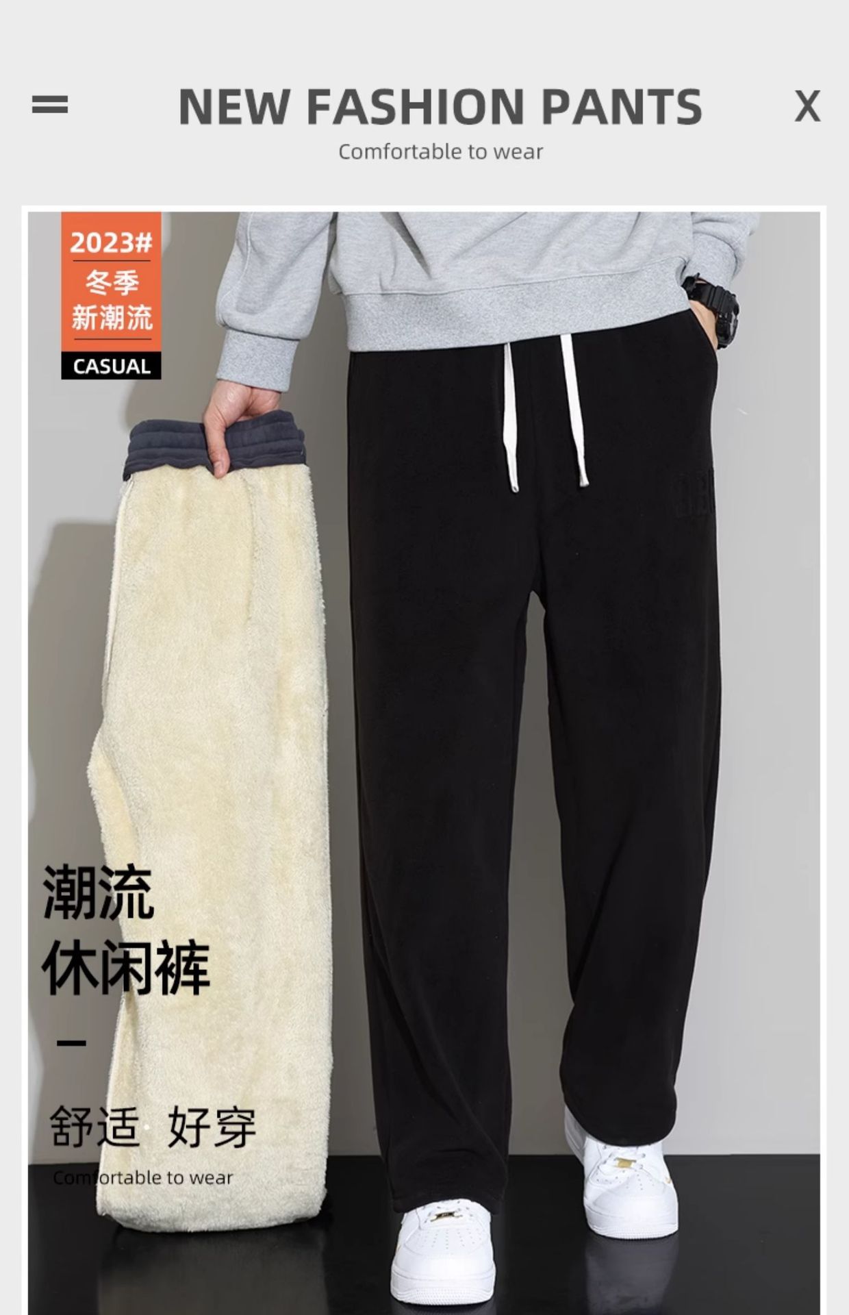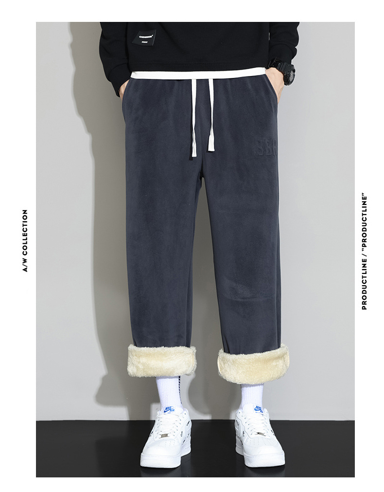 Lambswool 바지 남성 겨울 기모 두꺼운 따뜻한 바지 청소년 느슨한 넓은 다리 스트레이트 캐주얼 스웨트 팬츠스토어 가기