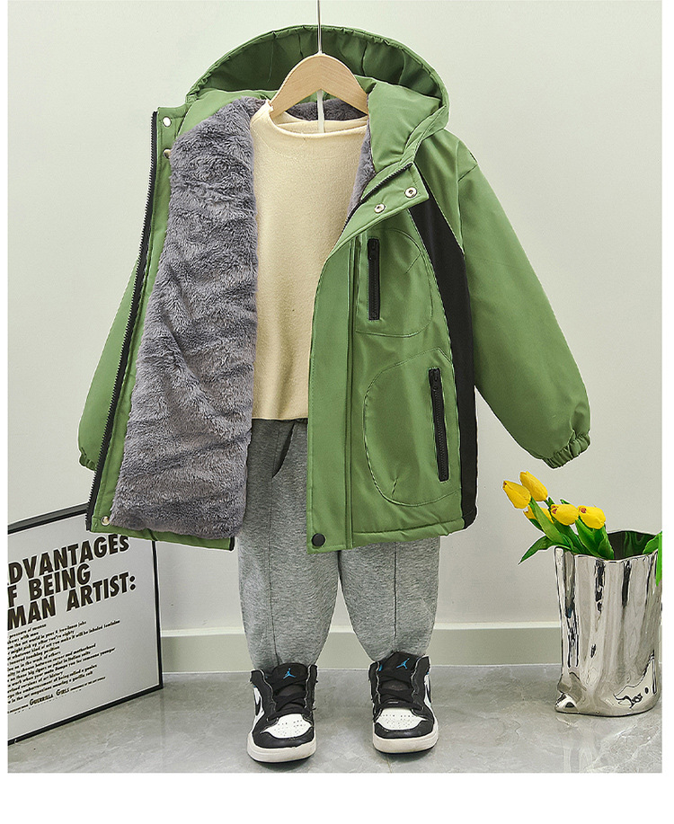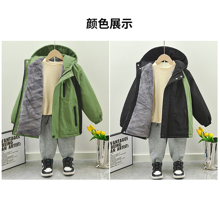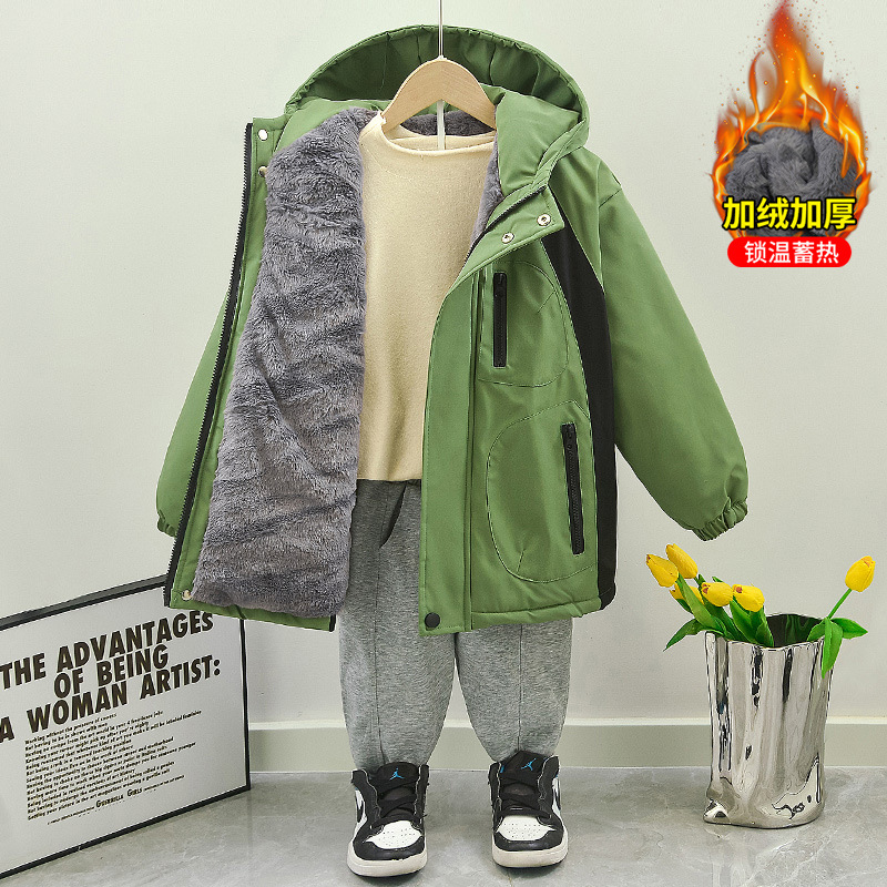 남자들의 겨울 두꺼운면 패딩 코트 2024 새로운 아동복 가을과 겨울 소년 기모 퀼트 파카 의류 패션스토어 가기