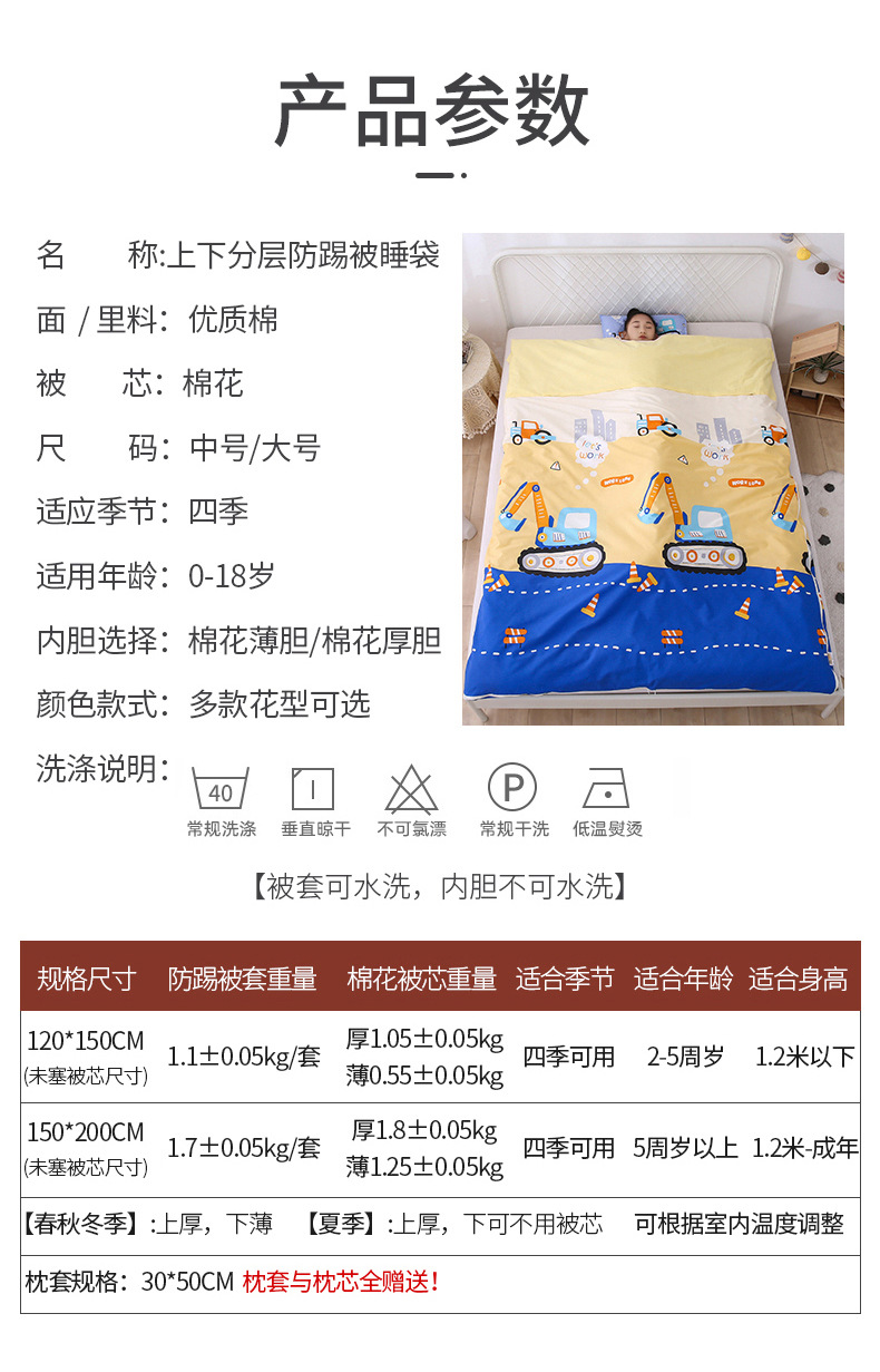 • 대형 150*200cm 별도의 킥 방지 이불 재킷