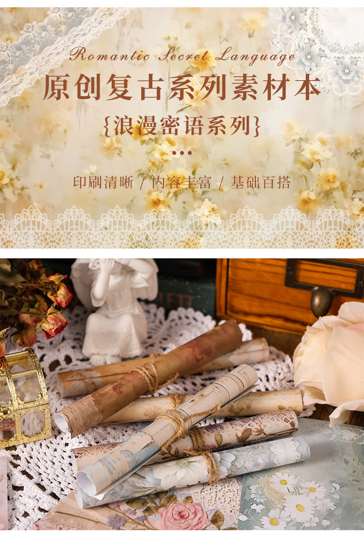 낭만적 인 비밀 시리즈 복고풍 소재이 유럽 스타일의 콜라주 기본 장식 소재 diy 손 계정 메시지 메모 용지스토어 가기